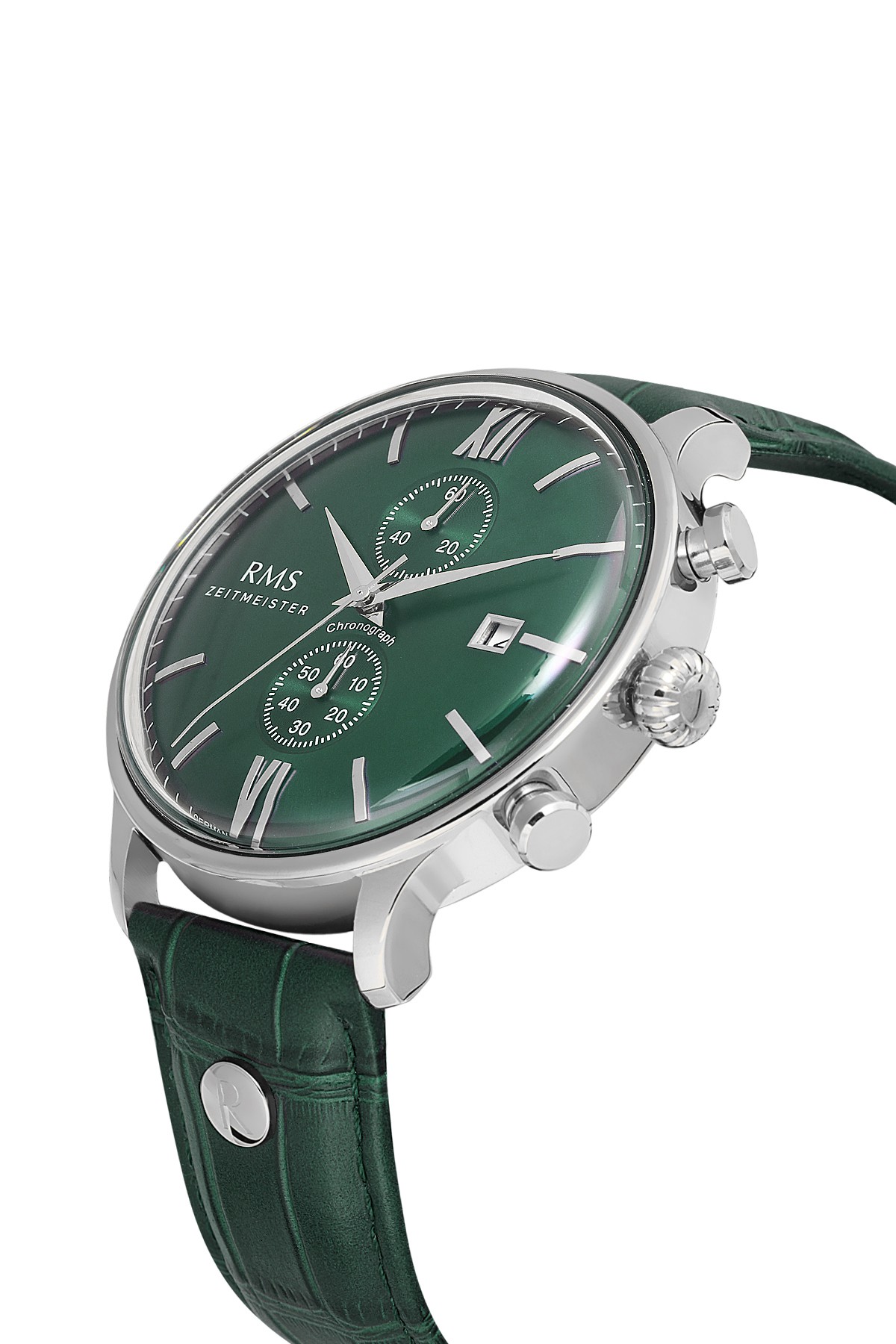 Erkek - Multi̇ Fonksi̇yon - Gümüş - Yeşi̇l - Doğal Deri̇ Kordon - Yeşi̇l - 5 Atm - Sertleşti̇ri̇lmi̇ş Mi̇neral Cam - Grand Romanson - 45