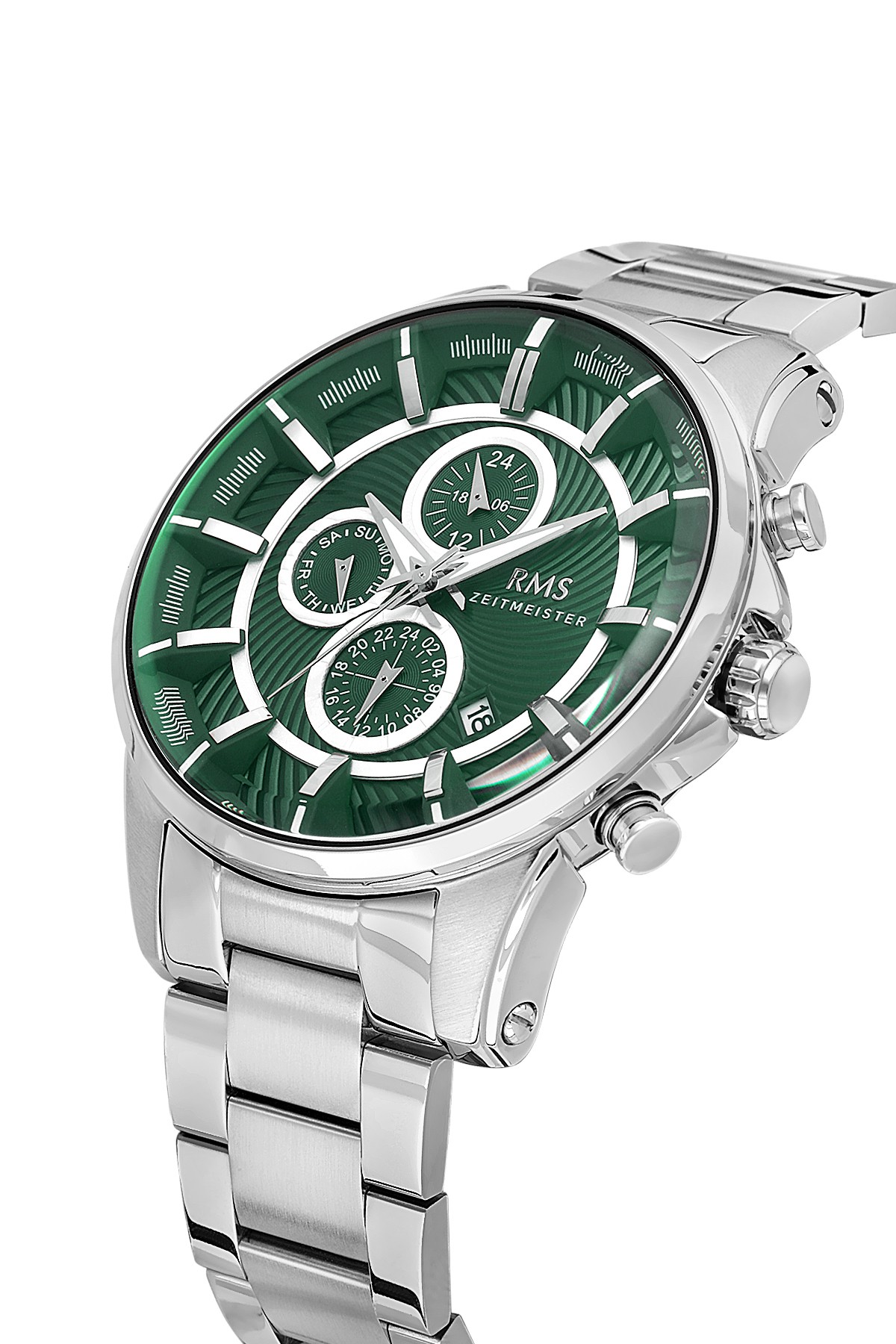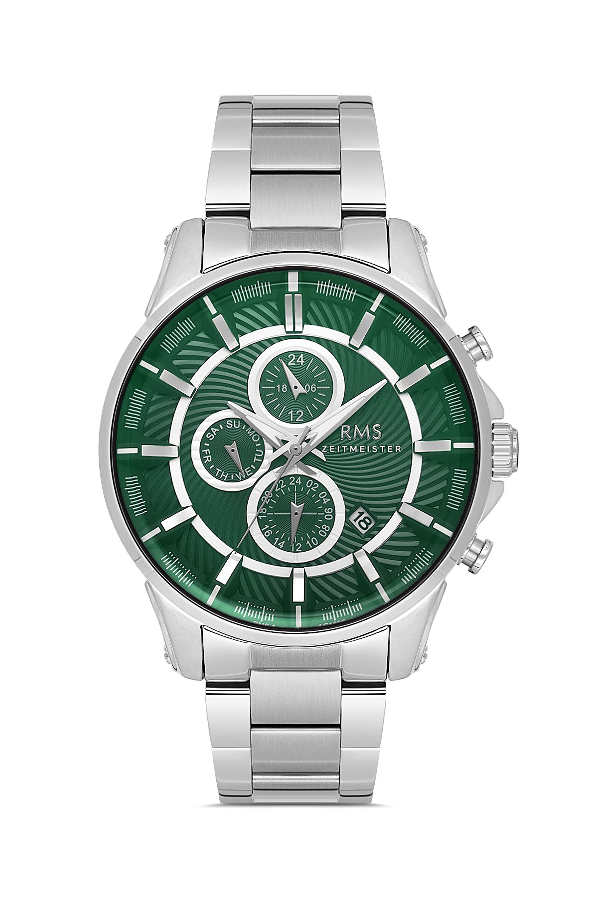 Erkek - Kronometre - Gümüş - Yeşi̇l - Paslanmaz Masi̇f Çeli̇k - 5 Atm - Sertleşti̇ri̇lmi̇ş Mi̇neral Cam - Grand Romanson - 47