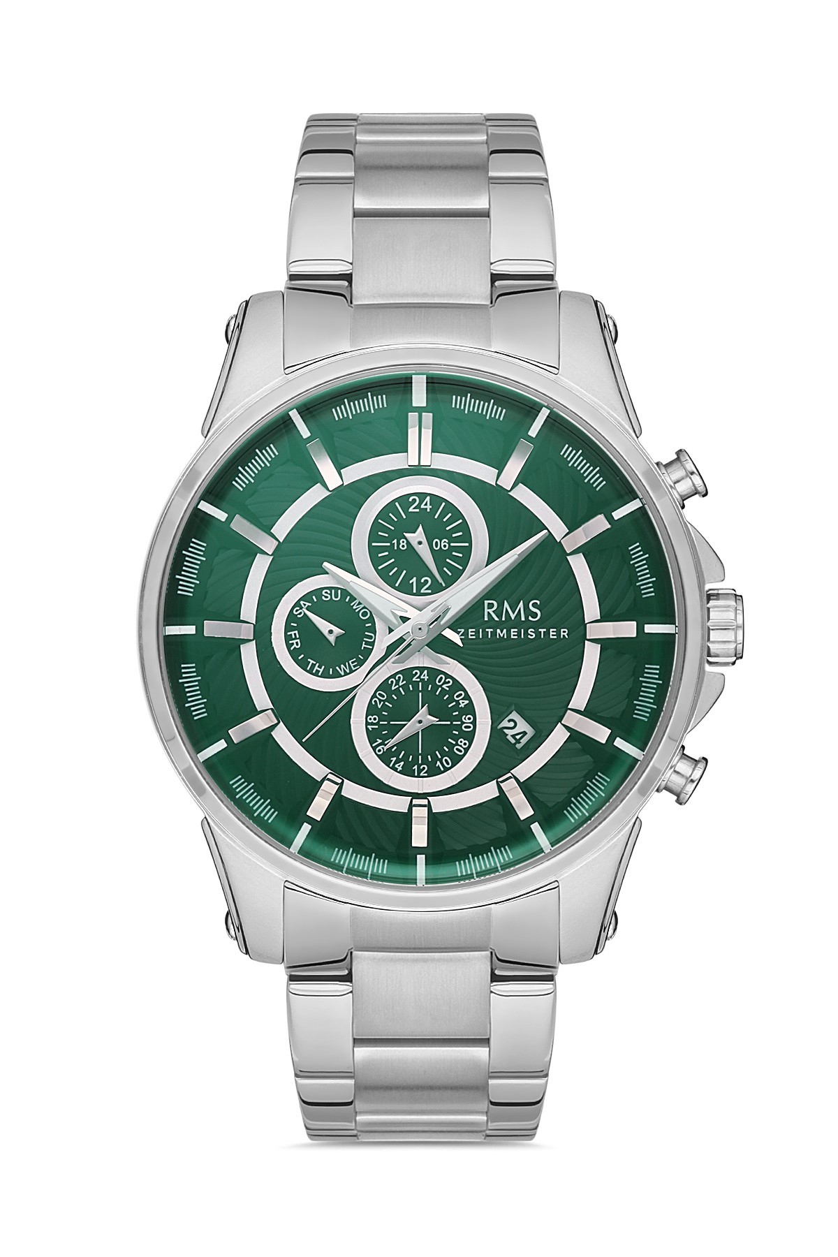 Erkek - Kronometre - Gümüş - Yeşi̇l - Paslanmaz Masi̇f Çeli̇k - 5 Atm - Sertleşti̇ri̇lmi̇ş Mi̇neral Cam - Grand Romanson - 47