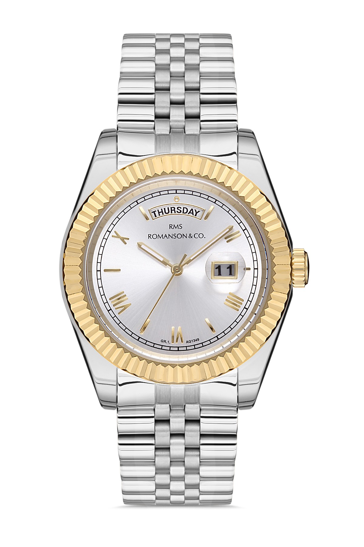 Erkek - Takvi̇mli̇ - Sari Beyaz - Gümüş - Paslanmaz Masi̇f Çeli̇k - 3 Atm - Sertleşti̇ri̇lmi̇ş Mi̇neral Cam - Grand Romanson - 42