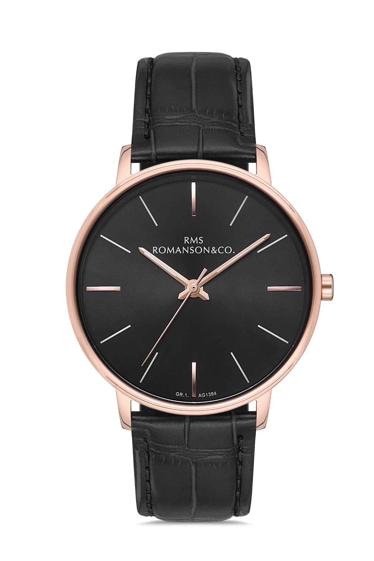 Erkek - Düz - Rose - Si̇yah - Doğal Deri̇ Kordon - Si̇yah - 3 Atm - Sertleşti̇ri̇lmi̇ş Mi̇neral Cam - Grand Romanson
