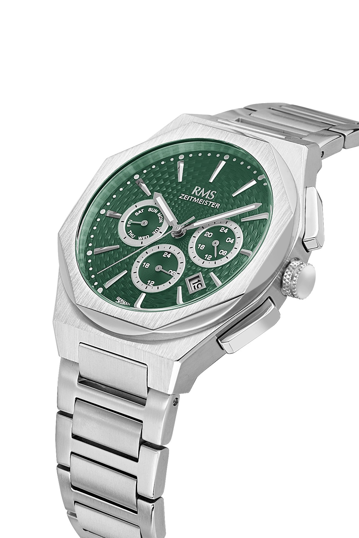 Erkek - Multi̇ Fonksi̇yon - Gümüş - Yeşi̇l - Paslanmaz Masi̇f Çeli̇k - 3 Atm - Sertleşti̇ri̇lmi̇ş Mi̇neral Cam - Grand Romanson - 43