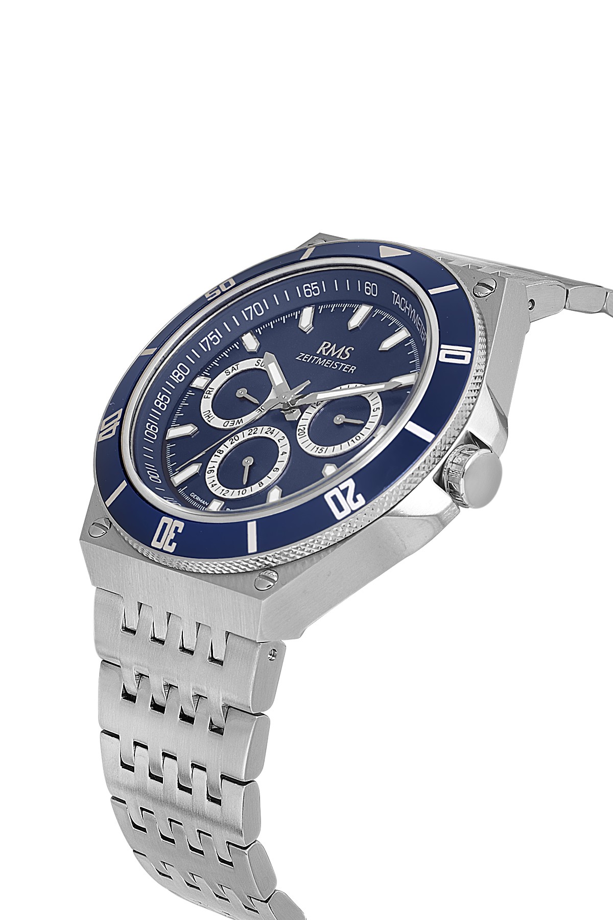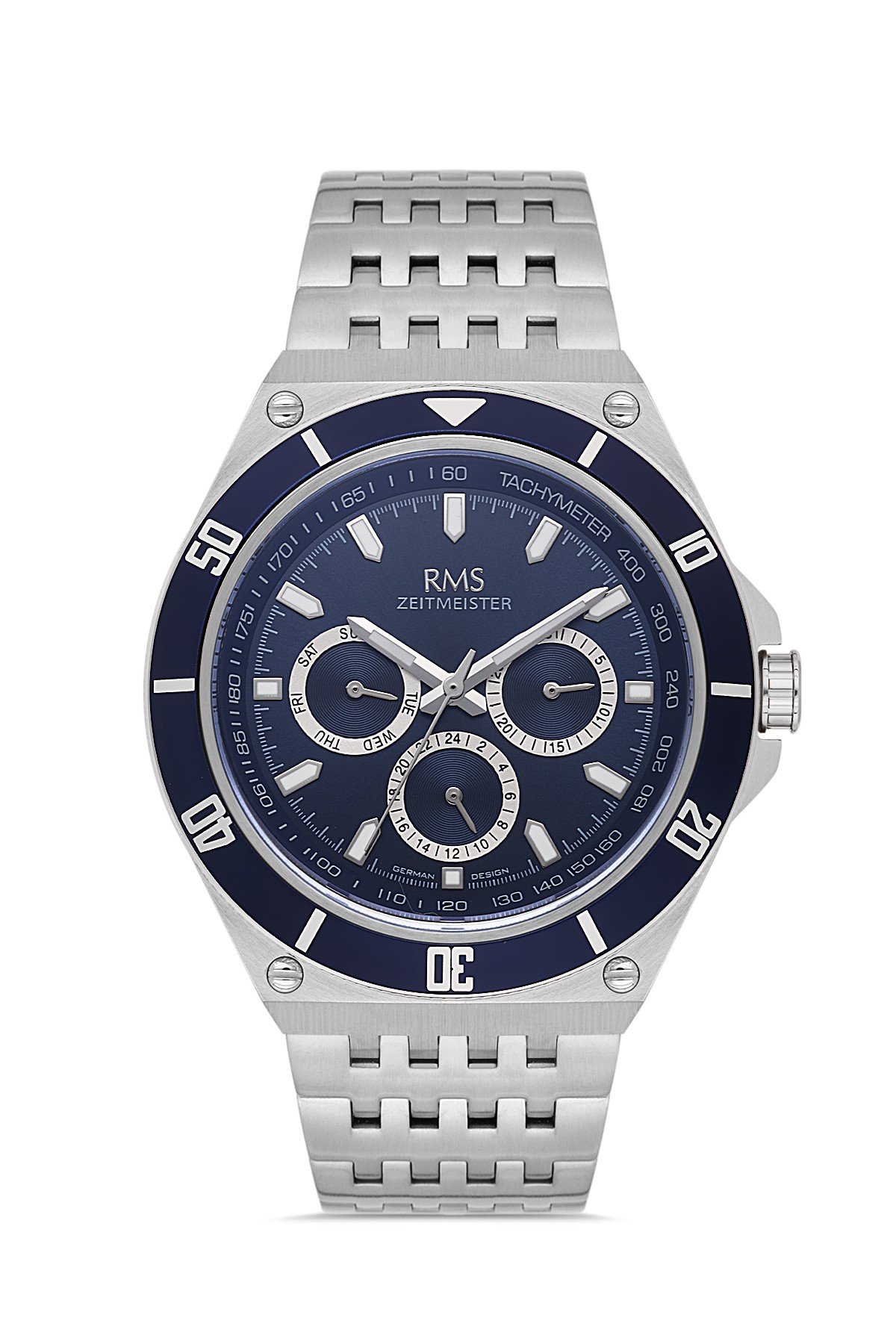 Erkek - Multi̇ Fonksi̇yon - Gümüş - Mavi̇ - Paslanmaz Masi̇f Çeli̇k - 5 Atm - Sertleşti̇ri̇lmi̇ş Mi̇neral Cam - Grand Romanson - 45