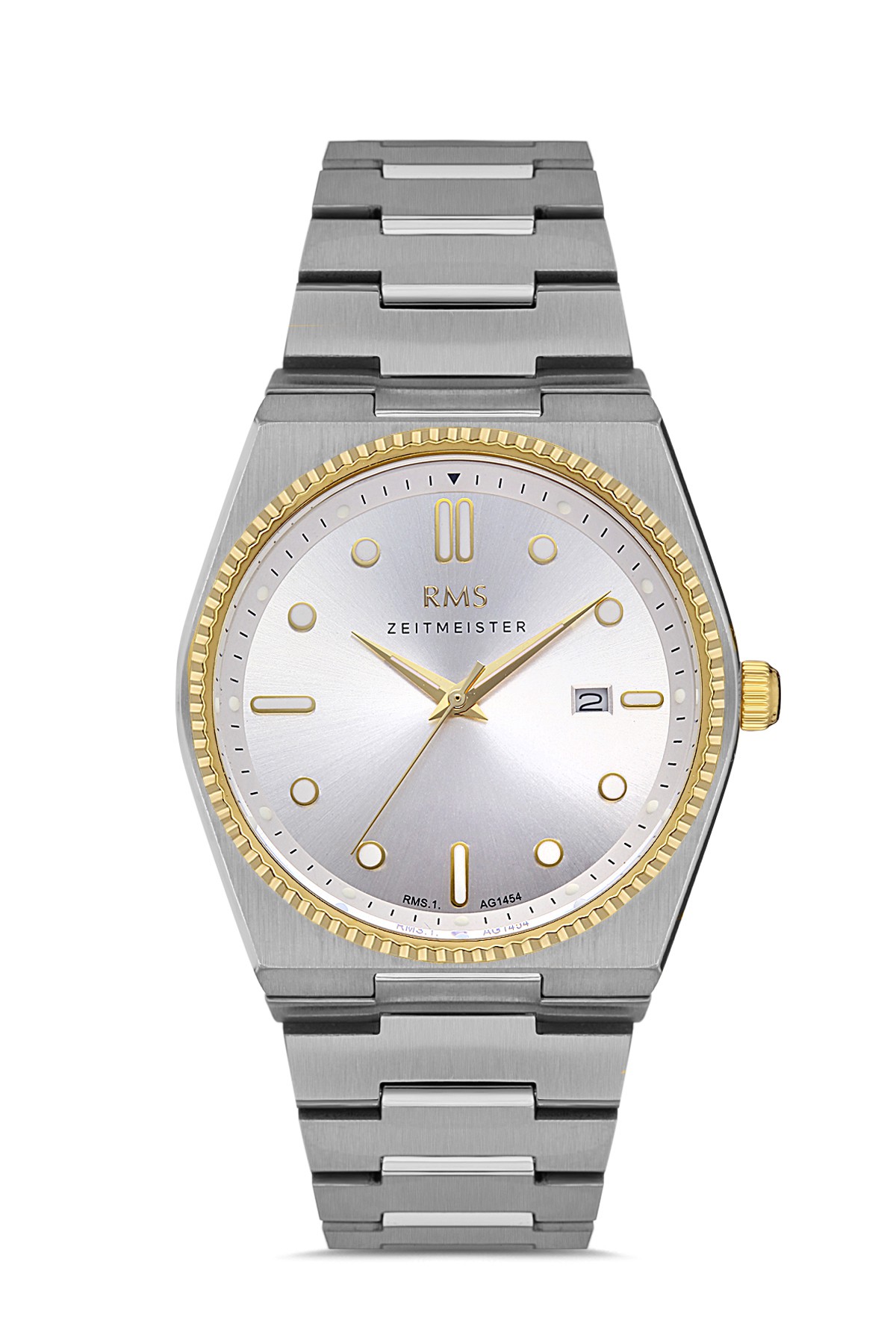 Erkek - Takvi̇mli̇ - Sari Beyaz - Gümüş - Paslanmaz Masi̇f Çeli̇k - 5 Atm - Sertleşti̇ri̇lmi̇ş Mi̇neral Cam - Grand Romanson