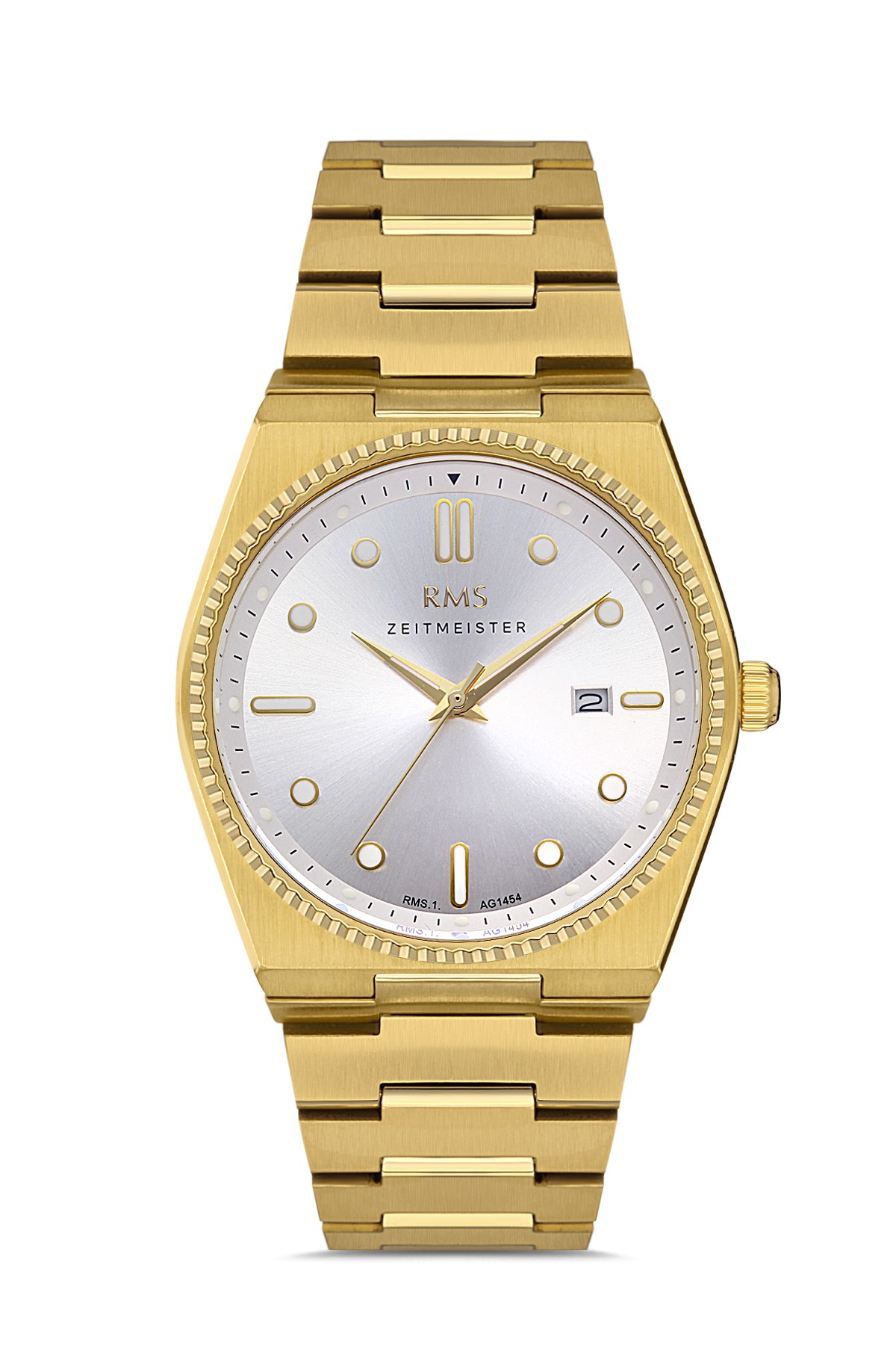 Erkek - Takvi̇mli̇ - Sari - Gümüş - Paslanmaz Masi̇f Çeli̇k - 5 Atm - Sertleşti̇ri̇lmi̇ş Mi̇neral Cam - Grand Romanson