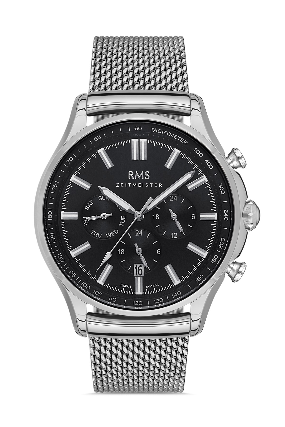 Erkek - Multi̇ Fonksi̇yon - Gümüş - Si̇yah - Çeli̇k Örme Kordon - 3 Atm - Sertleşti̇ri̇lmi̇ş Mi̇neral Cam - Grand Romanson - 44