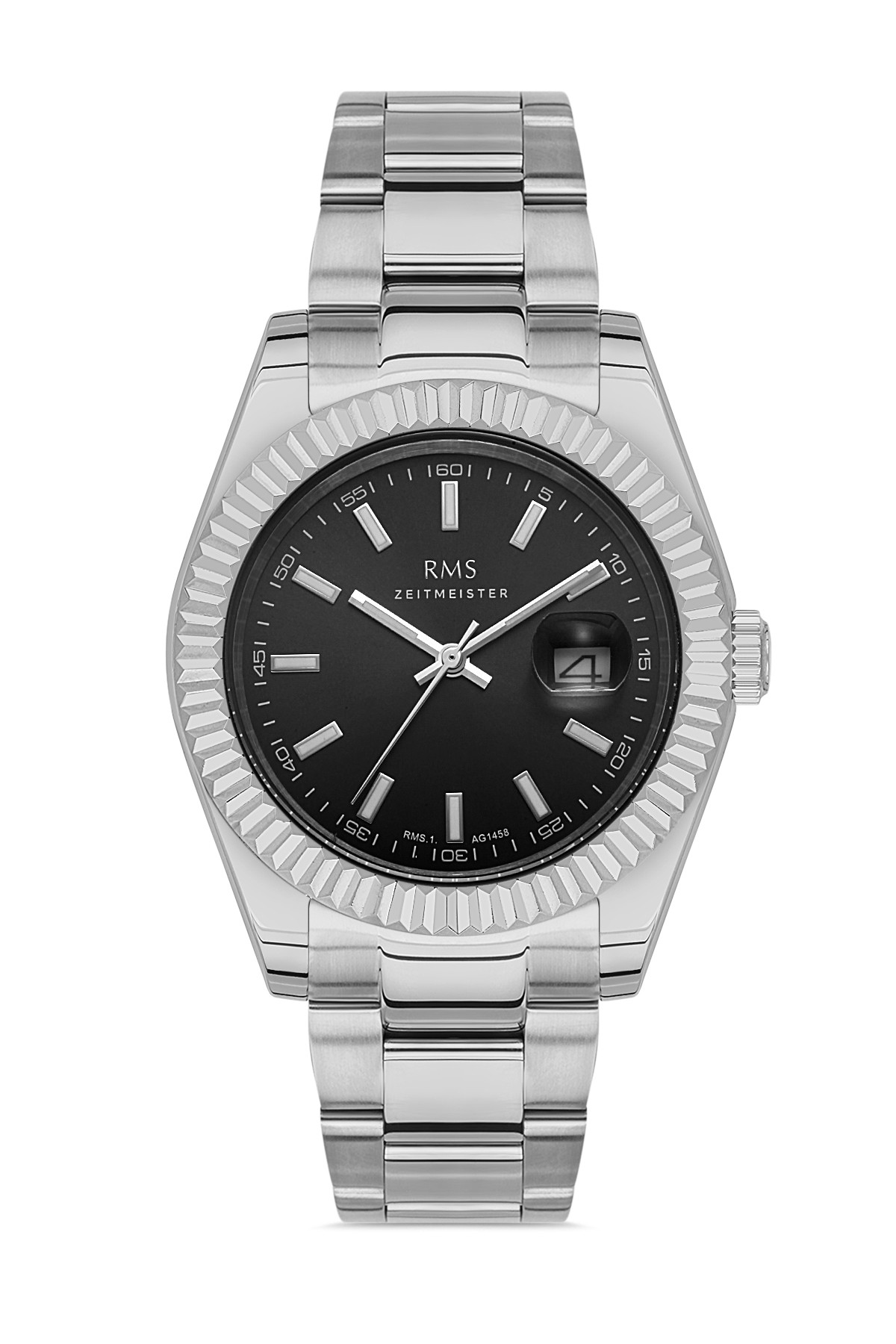 Erkek - Takvi̇mli̇ - Gümüş - Si̇yah - Paslanmaz Masi̇f Çeli̇k - 3 Atm - Sertleşti̇ri̇lmi̇ş Mi̇neral Cam - Grand Romanson