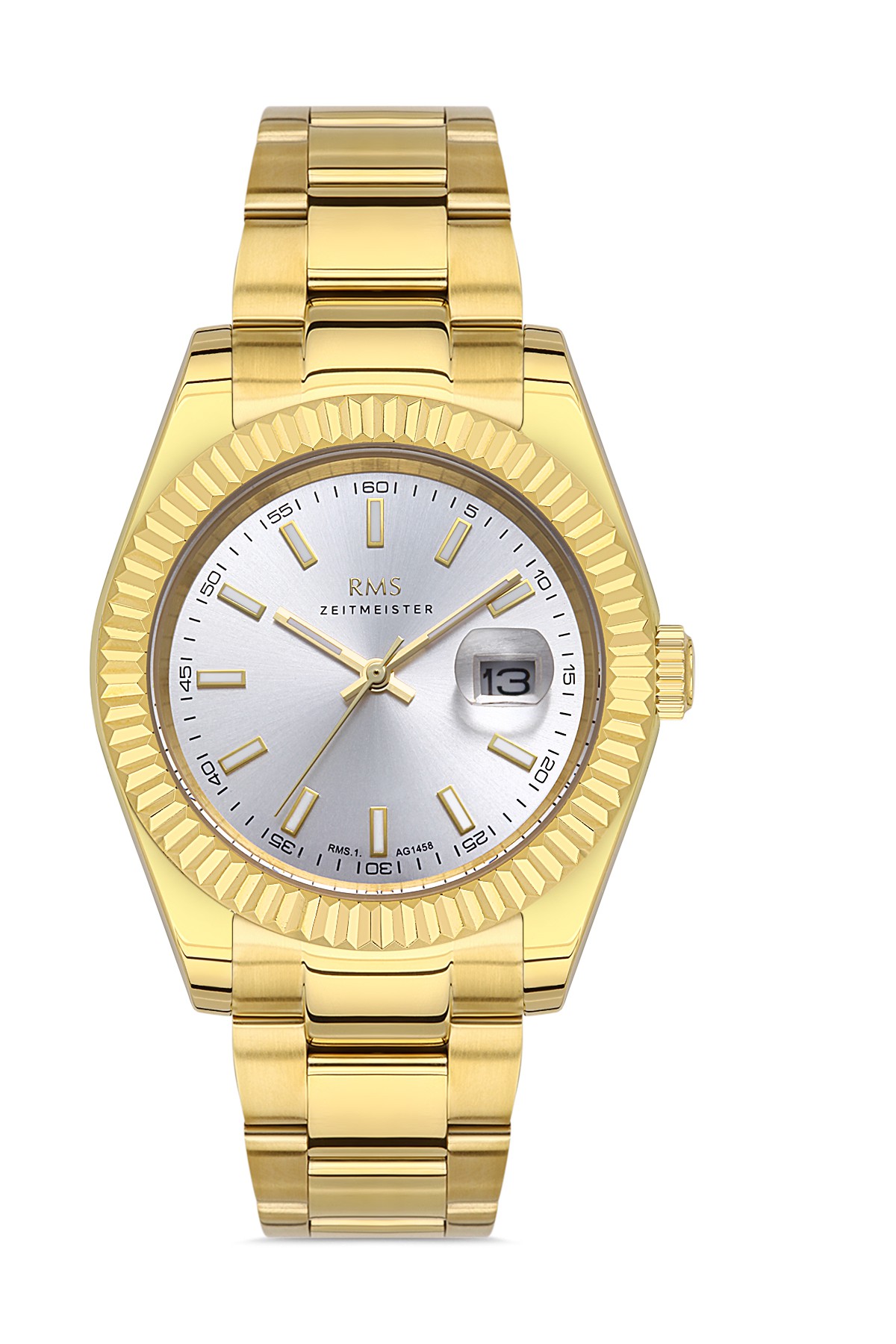 Erkek - Takvi̇mli̇ - Sari - Gümüş - Paslanmaz Masi̇f Çeli̇k - 3 Atm - Sertleşti̇ri̇lmi̇ş Mi̇neral Cam - Grand Romanson