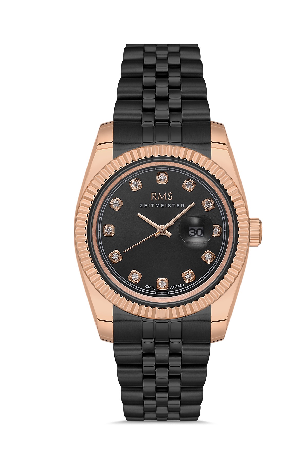 Kadın - Takvi̇mli̇ - Rose Si̇yah - Si̇yah - Paslanmaz Masi̇f Çeli̇k - 3 Atm - Sertleşti̇ri̇lmi̇ş Mi̇neral Cam - Grand Romanson