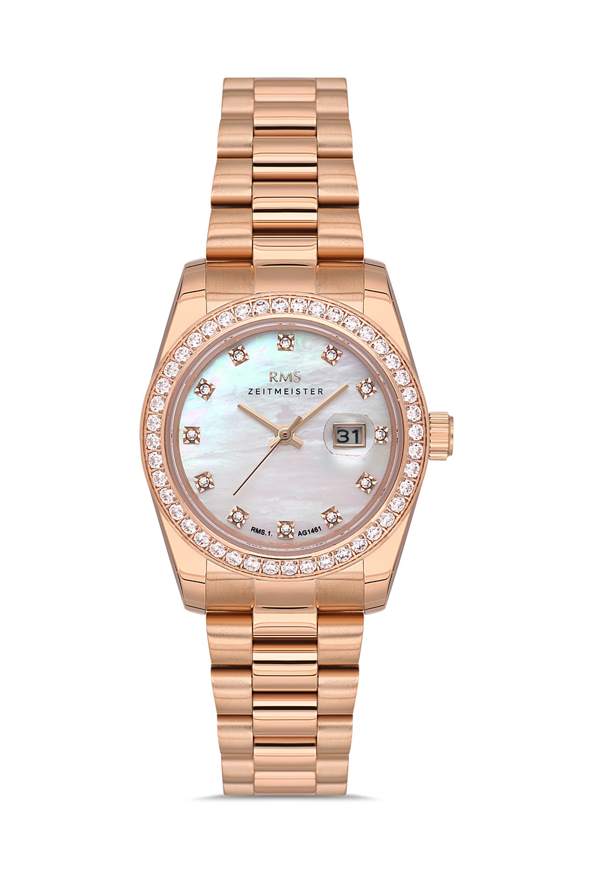 Kadın - Taşli - Rose - Gümüş - Paslanmaz Masi̇f Çeli̇k - 3 Atm - Sertleşti̇ri̇lmi̇ş Mi̇neral Cam - Grand Romanson - 32
