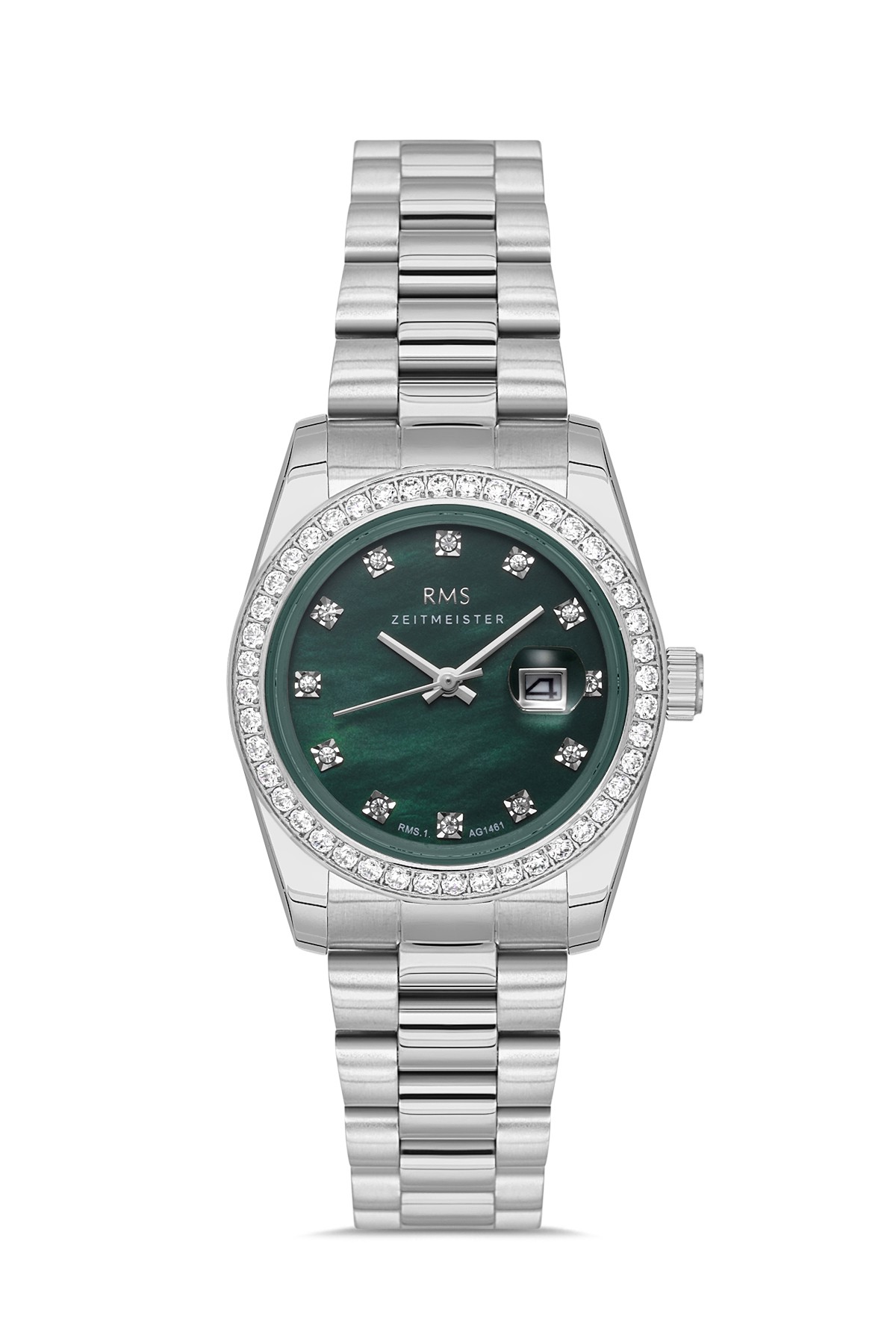 Kadın - Taşli - Gümüş - Yeşi̇l - Paslanmaz Masi̇f Çeli̇k - 3 Atm - Sertleşti̇ri̇lmi̇ş Mi̇neral Cam - Grand Romanson - 32
