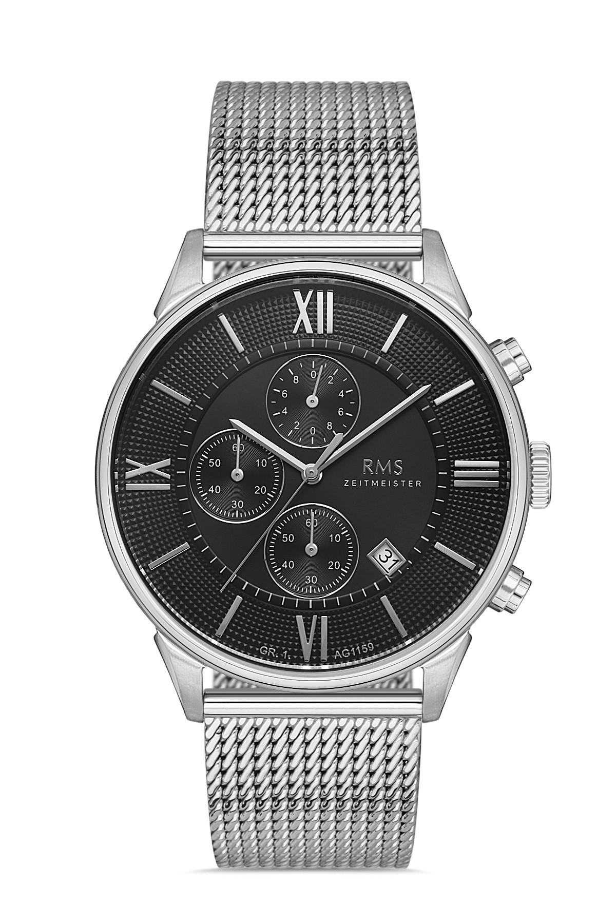 Erkek - Kronometre - Gümüş - Si̇yah - Çeli̇k Örme Kordon - 3 Atm - Sertleşti̇ri̇lmi̇ş Mi̇neral Cam - Grand Romanson
