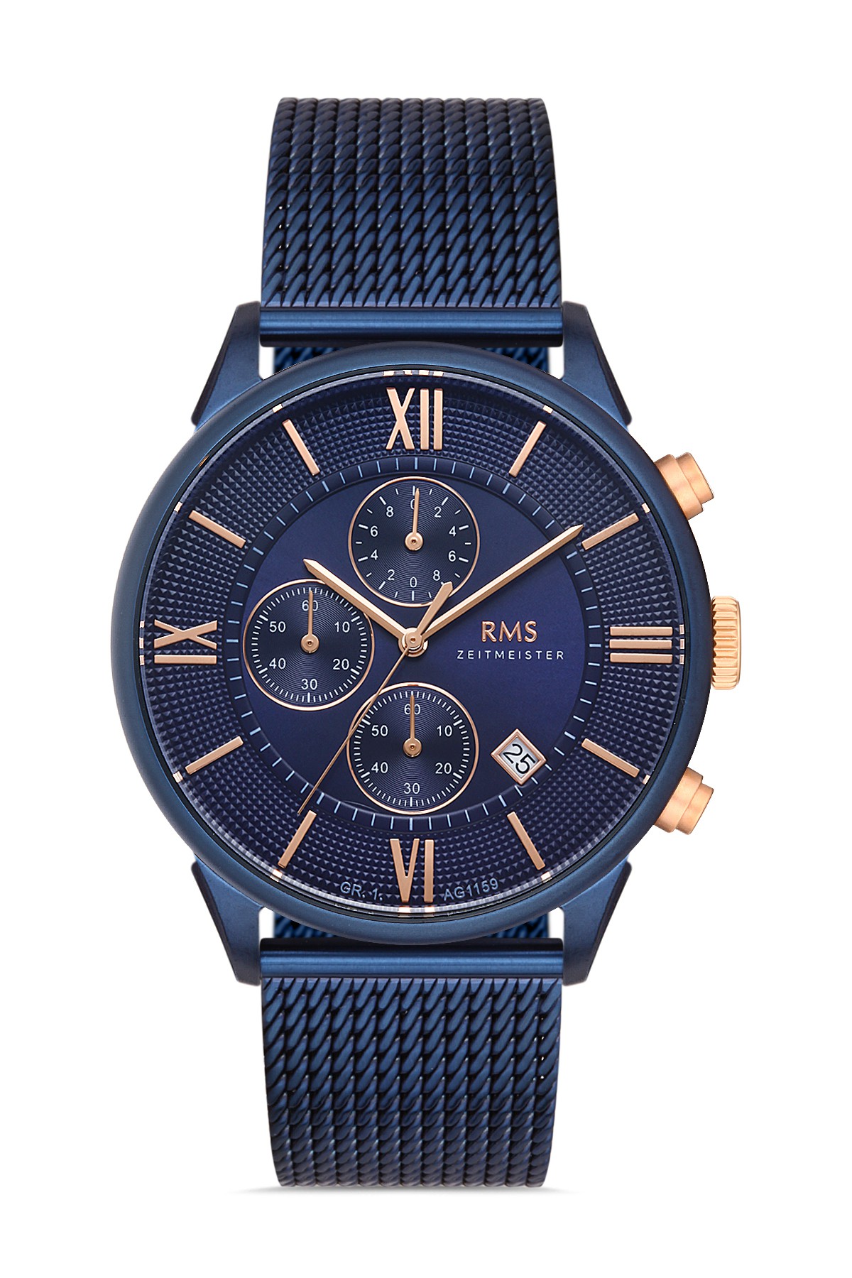 Erkek - Kronometre - Mavi̇ - Mavi̇ - Çeli̇k Örme Kordon - 3 Atm - Sertleşti̇ri̇lmi̇ş Mi̇neral Cam - Grand Romanson