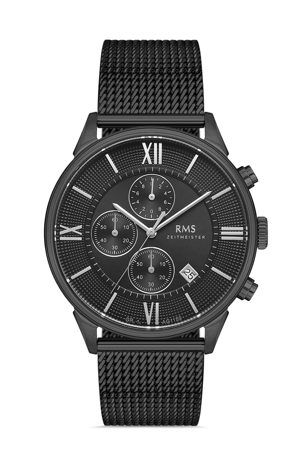 Erkek - Kronometre - Si̇yah - Si̇yah - Çeli̇k Örme Kordon - 3 Atm - Sertleşti̇ri̇lmi̇ş Mi̇neral Cam - Grand Romanson