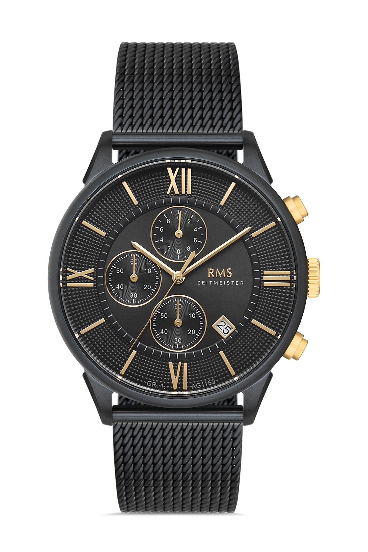 Erkek - Kronometre - Sari - Si̇yah - Çeli̇k Örme Kordon - 3 Atm - Sertleşti̇ri̇lmi̇ş Mi̇neral Cam - Grand Romanson