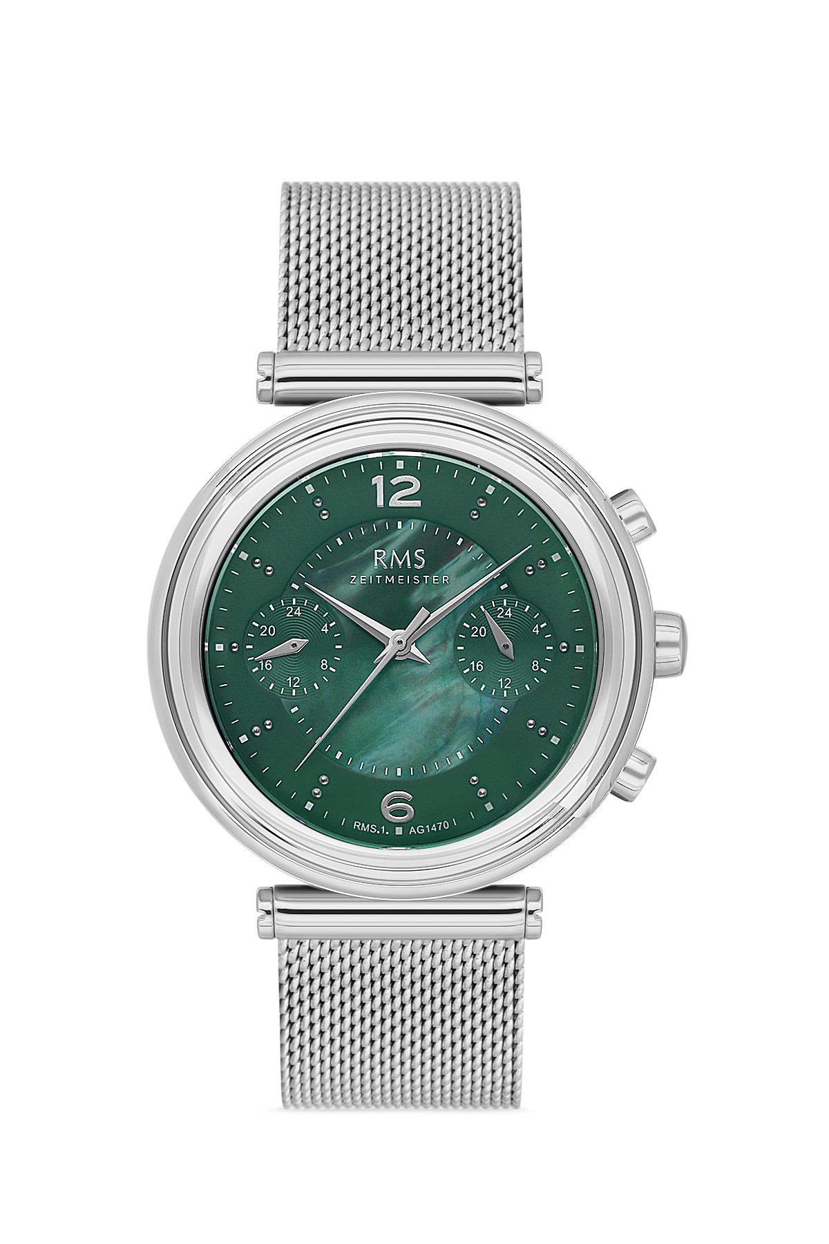 Kadın - Multi̇ Fonksi̇yon - Gümüş - Yeşi̇l - Çeli̇k Örme Kordon - 3 Atm - Sertleşti̇ri̇lmi̇ş Mi̇neral Cam - Grand Romanson - 36