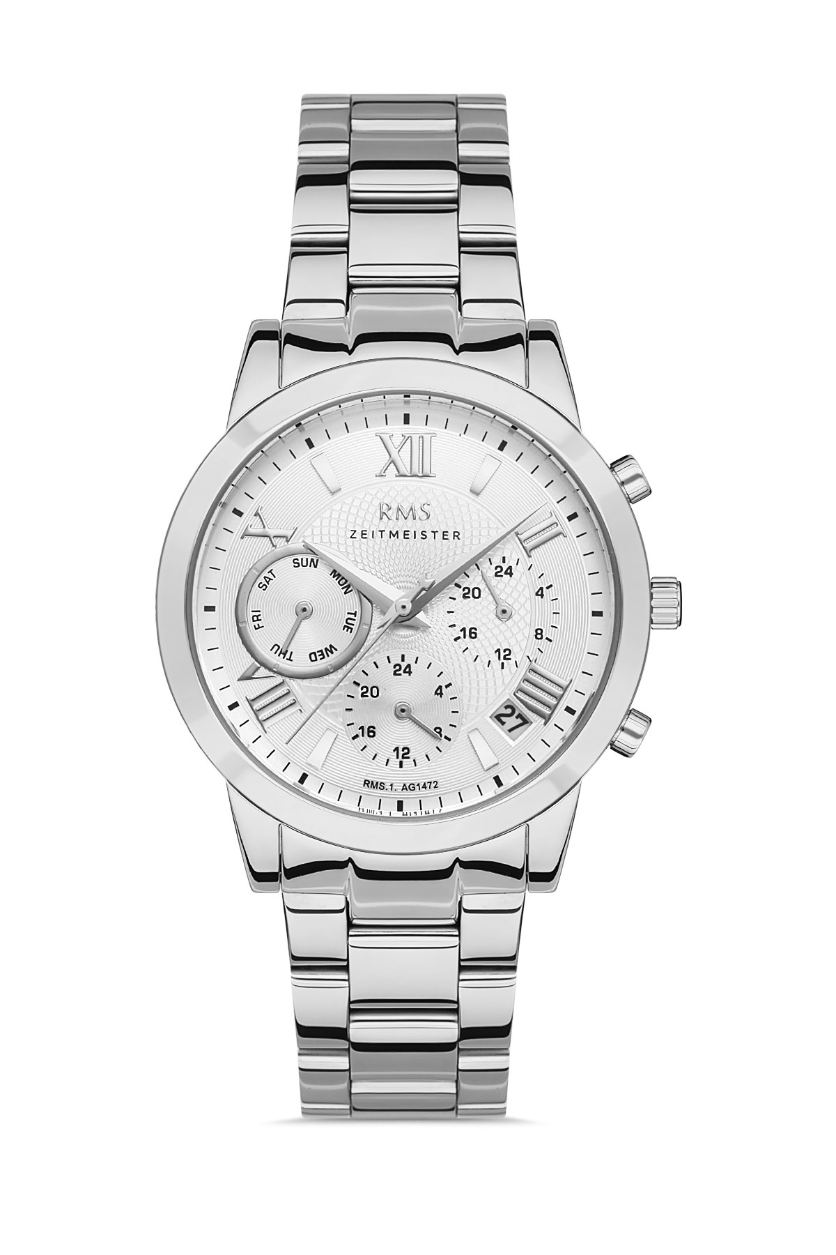 Kadın - Multi̇ Fonksi̇yon - Gümüş - Gümüş - Paslanmaz Masi̇f Çeli̇k - 3 Atm - Sertleşti̇ri̇lmi̇ş Mi̇neral Cam - Grand Romanson