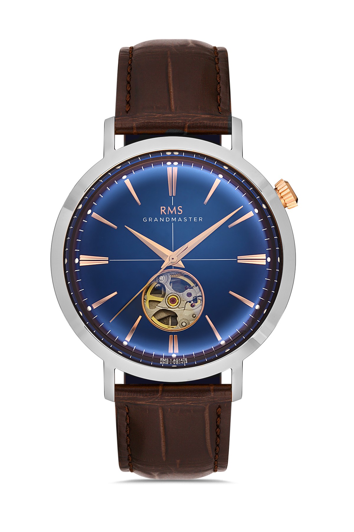 Erkek - Otomati̇k - Gümüş - Mavi̇ - Doğal Deri̇ Kordon - Kahverengi̇ - 3 Atm - Sertleşti̇ri̇lmi̇ş Mi̇neral Cam - Grand Romanson
