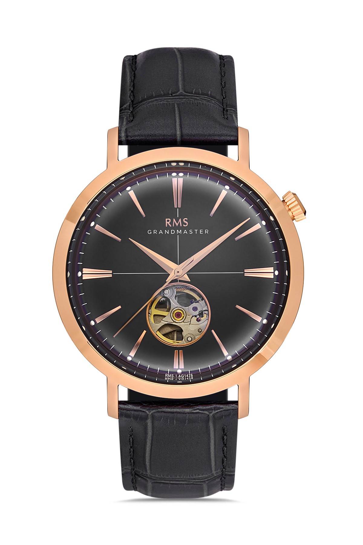 Erkek - Otomati̇k - Rose - Si̇yah - Doğal Deri̇ Kordon - Si̇yah - 3 Atm - Sertleşti̇ri̇lmi̇ş Mi̇neral Cam - Grand Romanson