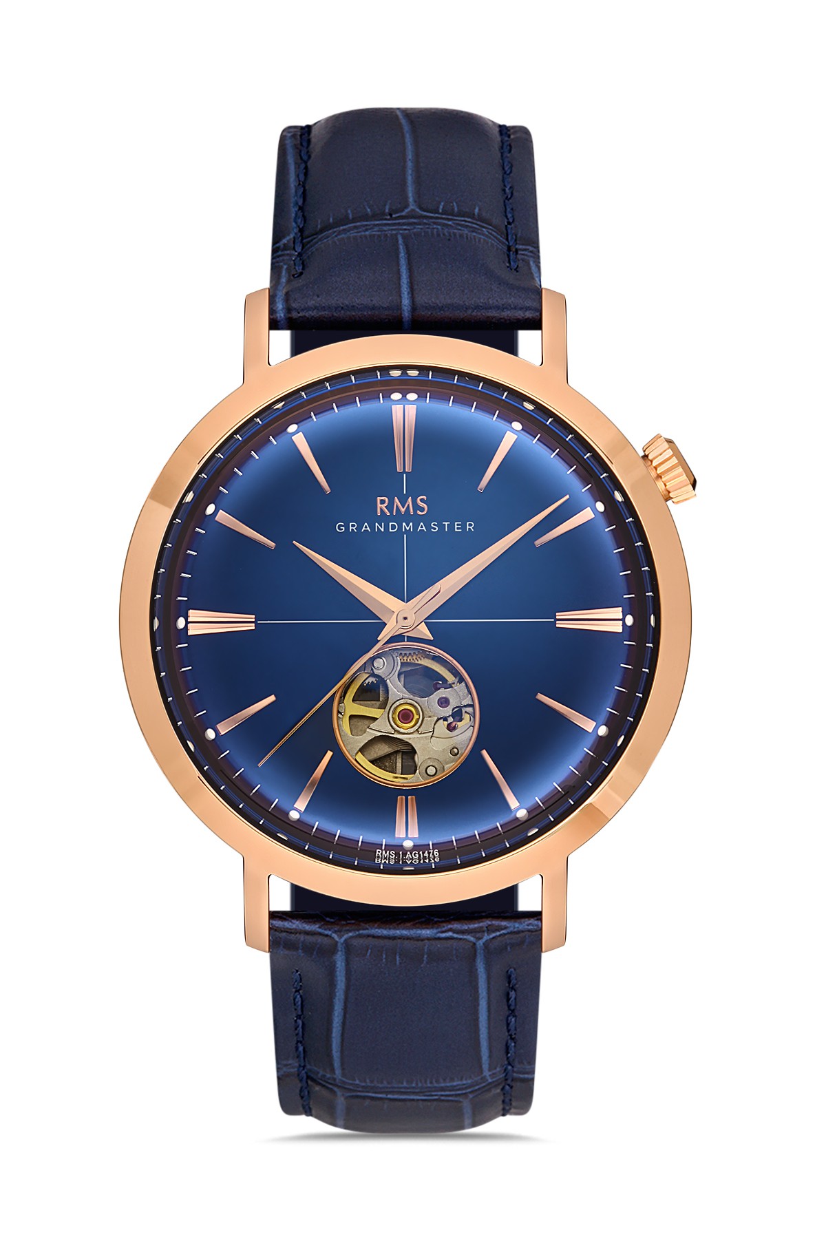Erkek - Otomati̇k - Rose - Mavi̇ - Doğal Deri̇ Kordon - Mavi̇ - 3 Atm - Sertleşti̇ri̇lmi̇ş Mi̇neral Cam - Grand Romanson