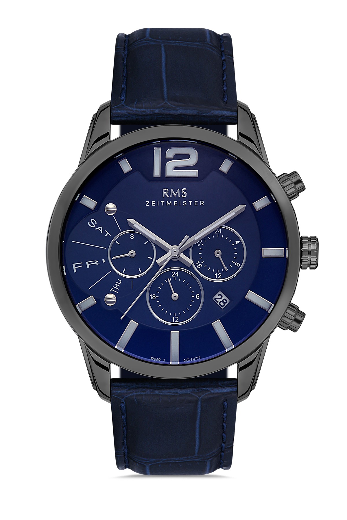 Erkek - Multi̇ Fonksi̇yon - Gun - Mavi̇ - Doğal Deri̇ Kordon - Mavi̇ - 3 Atm - Sertleşti̇ri̇lmi̇ş Mi̇neral Cam - Grand Romanson