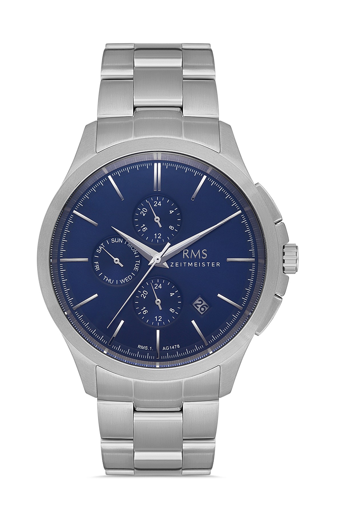 Erkek - Multi̇ Fonksi̇yon - Gümüş - Mavi̇ - Paslanmaz Masi̇f Çeli̇k - 3 Atm - Sertleşti̇ri̇lmi̇ş Mi̇neral Cam - Grand Romanson - 44