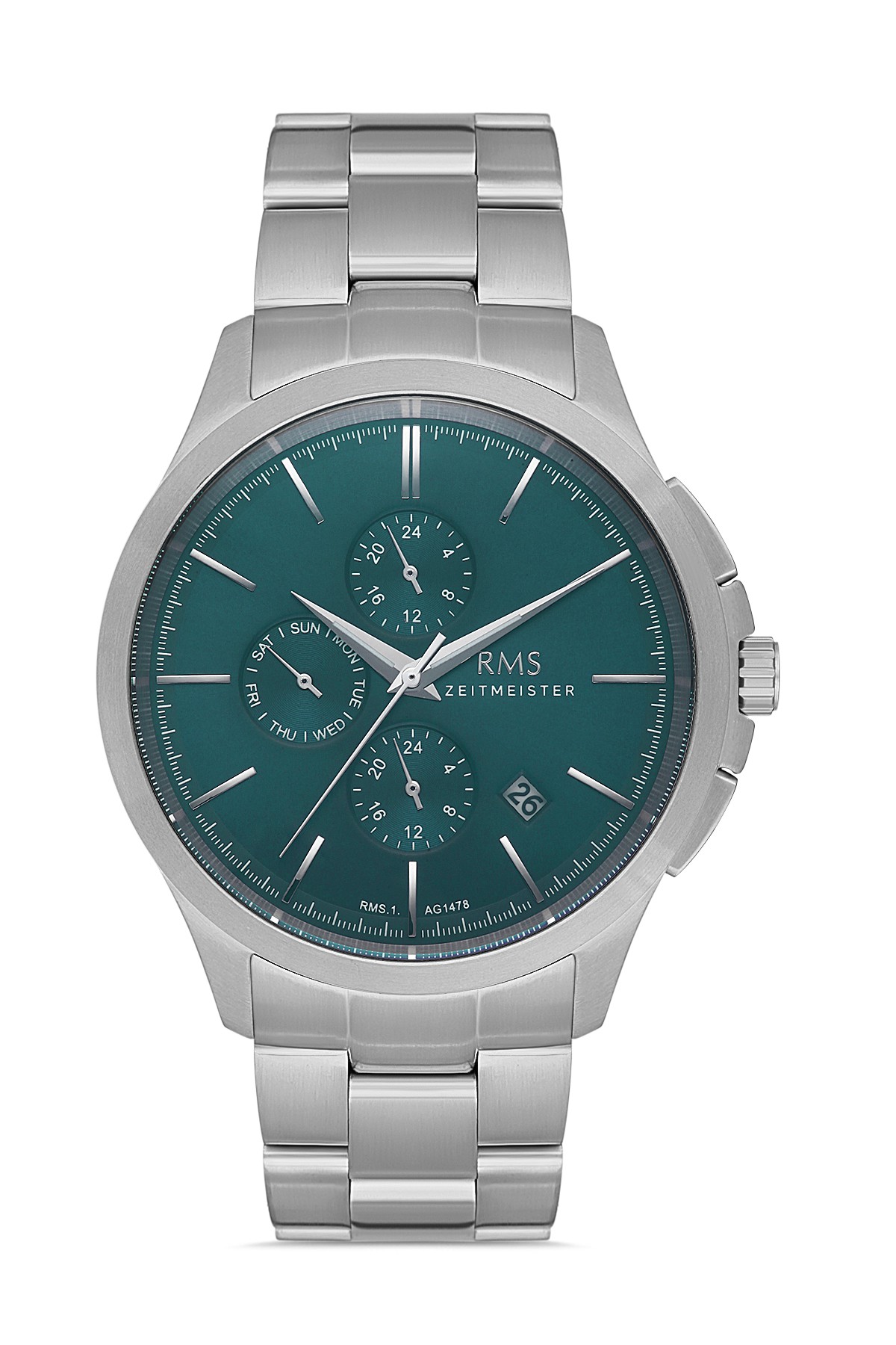 Erkek - Multi̇ Fonksi̇yon - Gümüş - Yeşi̇l - Paslanmaz Masi̇f Çeli̇k - 3 Atm - Sertleşti̇ri̇lmi̇ş Mi̇neral Cam - Grand Romanson - 44
