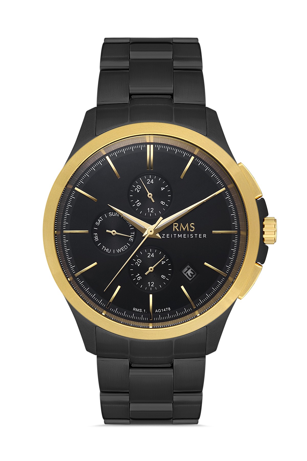 Erkek - Multi̇ Fonksi̇yon - Sari - Si̇yah - Paslanmaz Masi̇f Çeli̇k - 3 Atm - Sertleşti̇ri̇lmi̇ş Mi̇neral Cam - Grand Romanson - 44