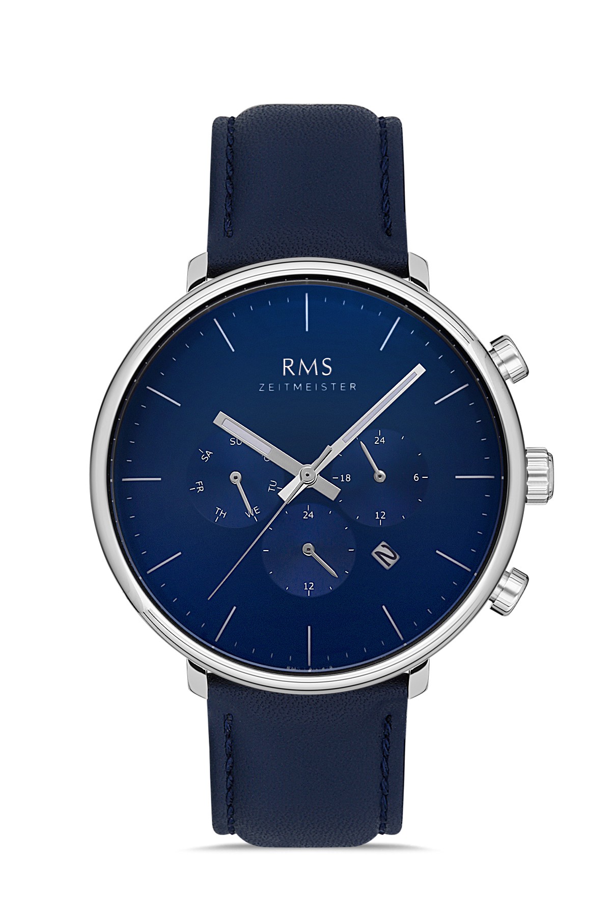 Erkek - Multi̇ Fonksi̇yon - Gümüş - Mavi̇ - Doğal Deri̇ Kordon - Mavi̇ - 3 Atm - Sertleşti̇ri̇lmi̇ş Mi̇neral Cam - Grand Romanson