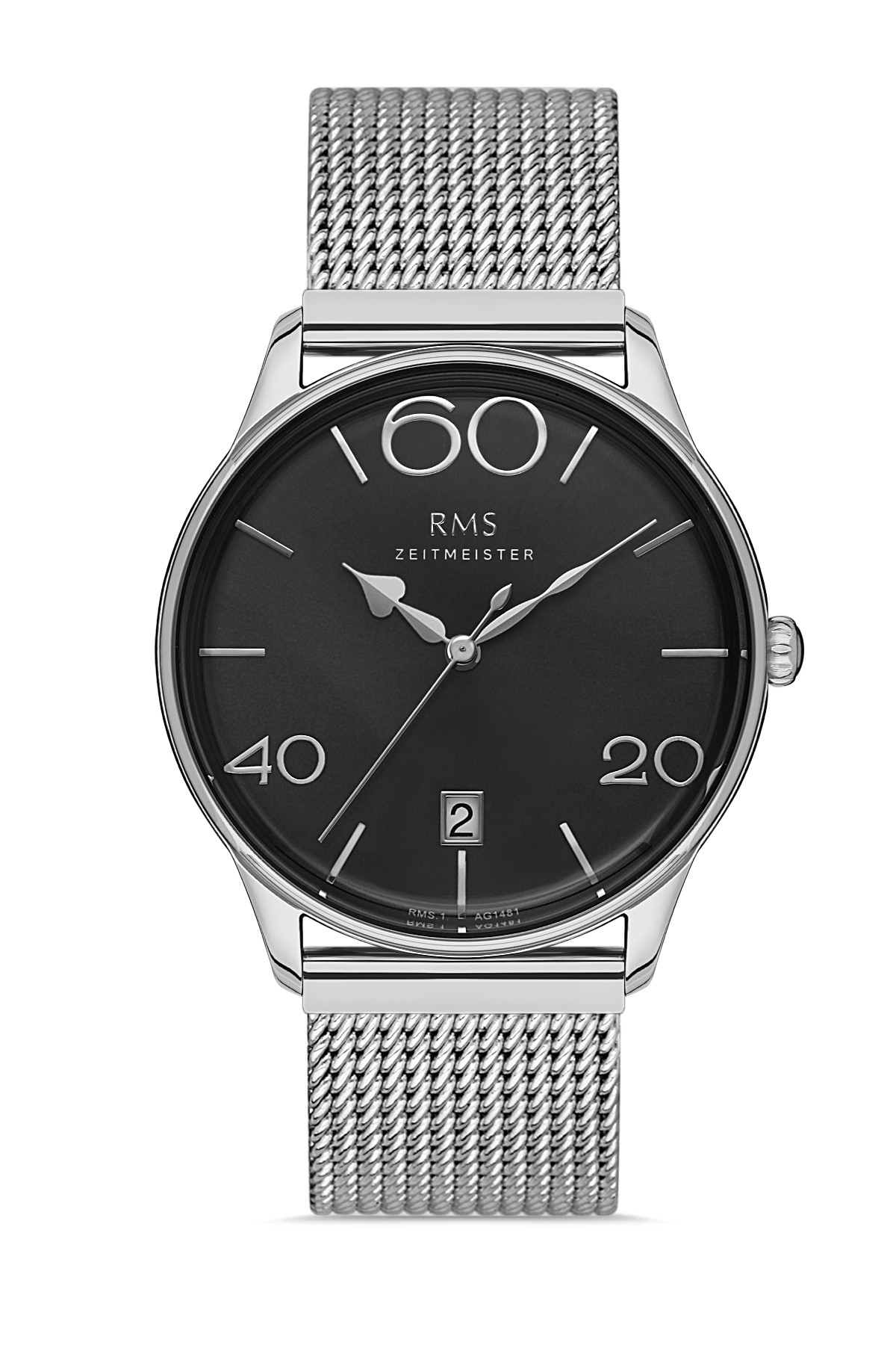 Erkek - Takvi̇mli̇ - Gümüş - Si̇yah - Çeli̇k Örme Kordon - 5 Atm - Sertleşti̇ri̇lmi̇ş Mi̇neral Cam - Grand Romanson - 42