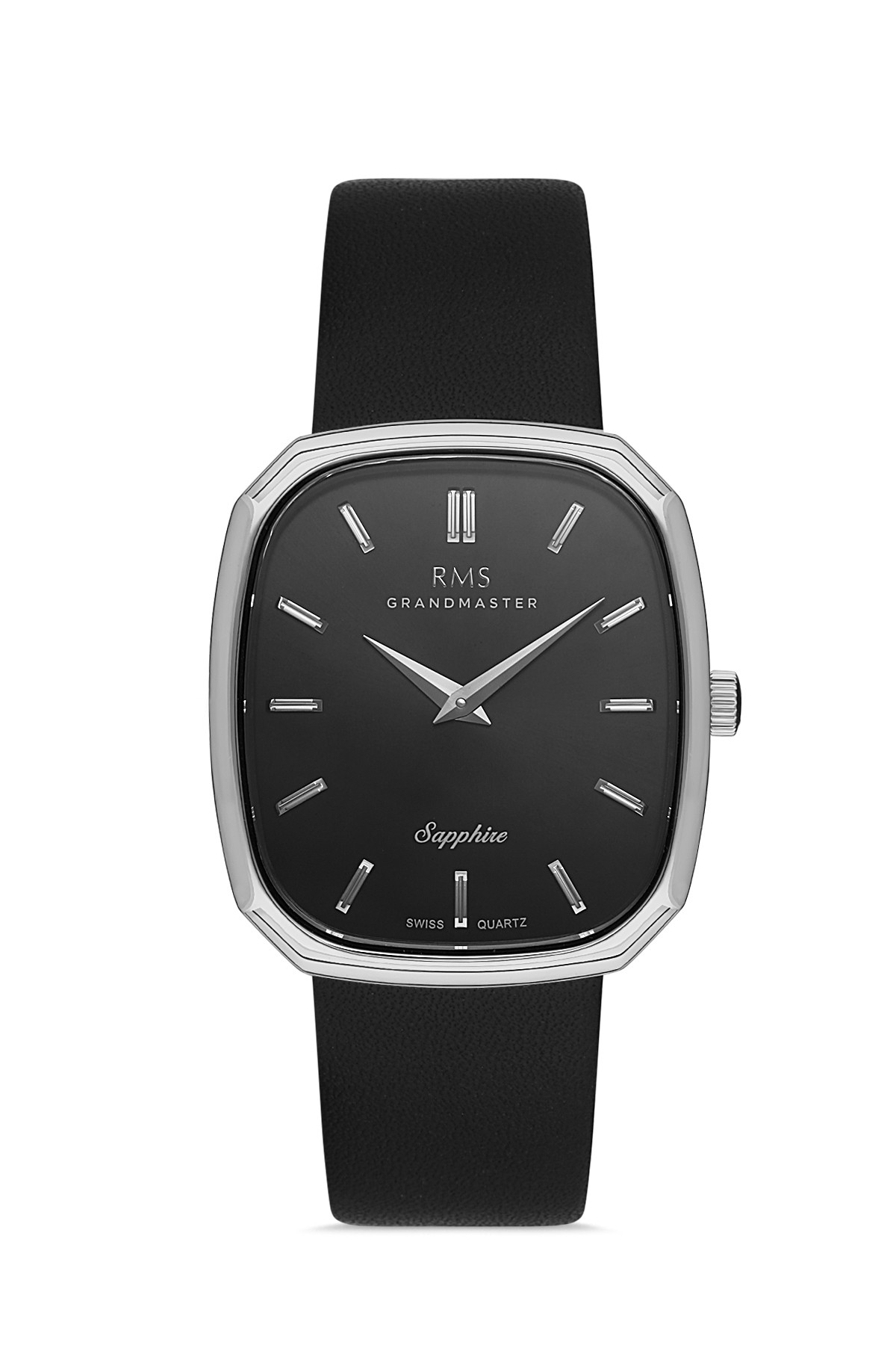 Erkek - Düz - Gümüş - Si̇yah - Doğal Deri̇ Kordon - Si̇yah - 3 Atm - Safi̇r Cam - Grand Romanson