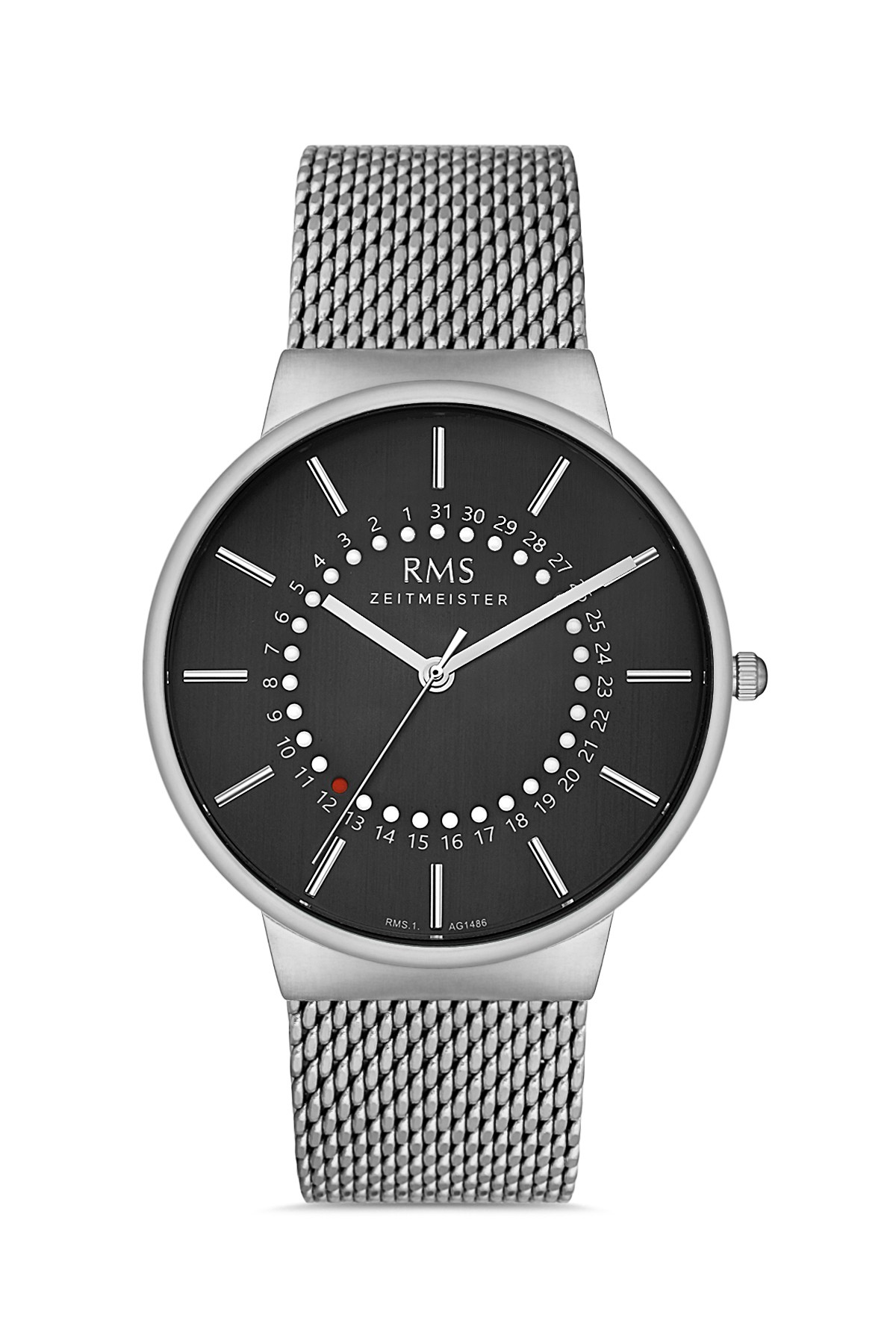 Erkek - Takvi̇mli̇ - Gümüş - Si̇yah - Çeli̇k Örme Kordon - 3 Atm - Sertleşti̇ri̇lmi̇ş Mi̇neral Cam - Grand Romanson