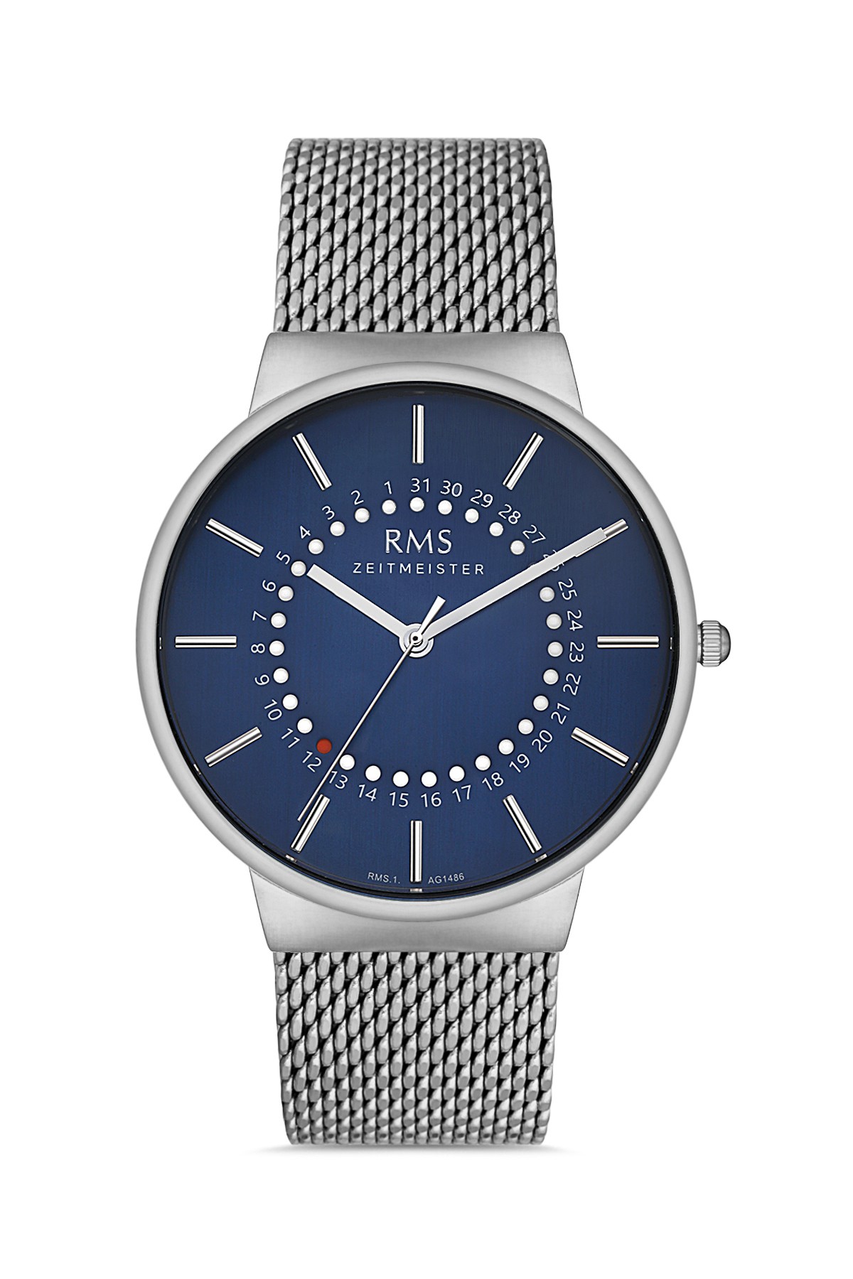 Erkek - Takvi̇mli̇ - Gümüş - Mavi̇ - Çeli̇k Örme Kordon - 3 Atm - Sertleşti̇ri̇lmi̇ş Mi̇neral Cam - Grand Romanson