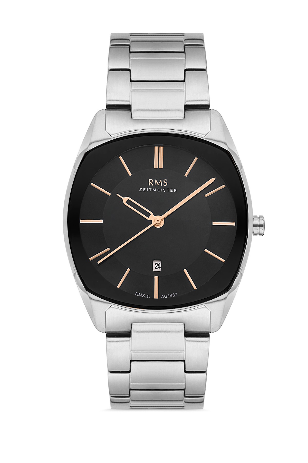 Erkek - Takvi̇mli̇ - Gümüş - Si̇yah - Paslanmaz Masi̇f Çeli̇k - 3 Atm - Sertleşti̇ri̇lmi̇ş Mi̇neral Cam - Grand Romanson