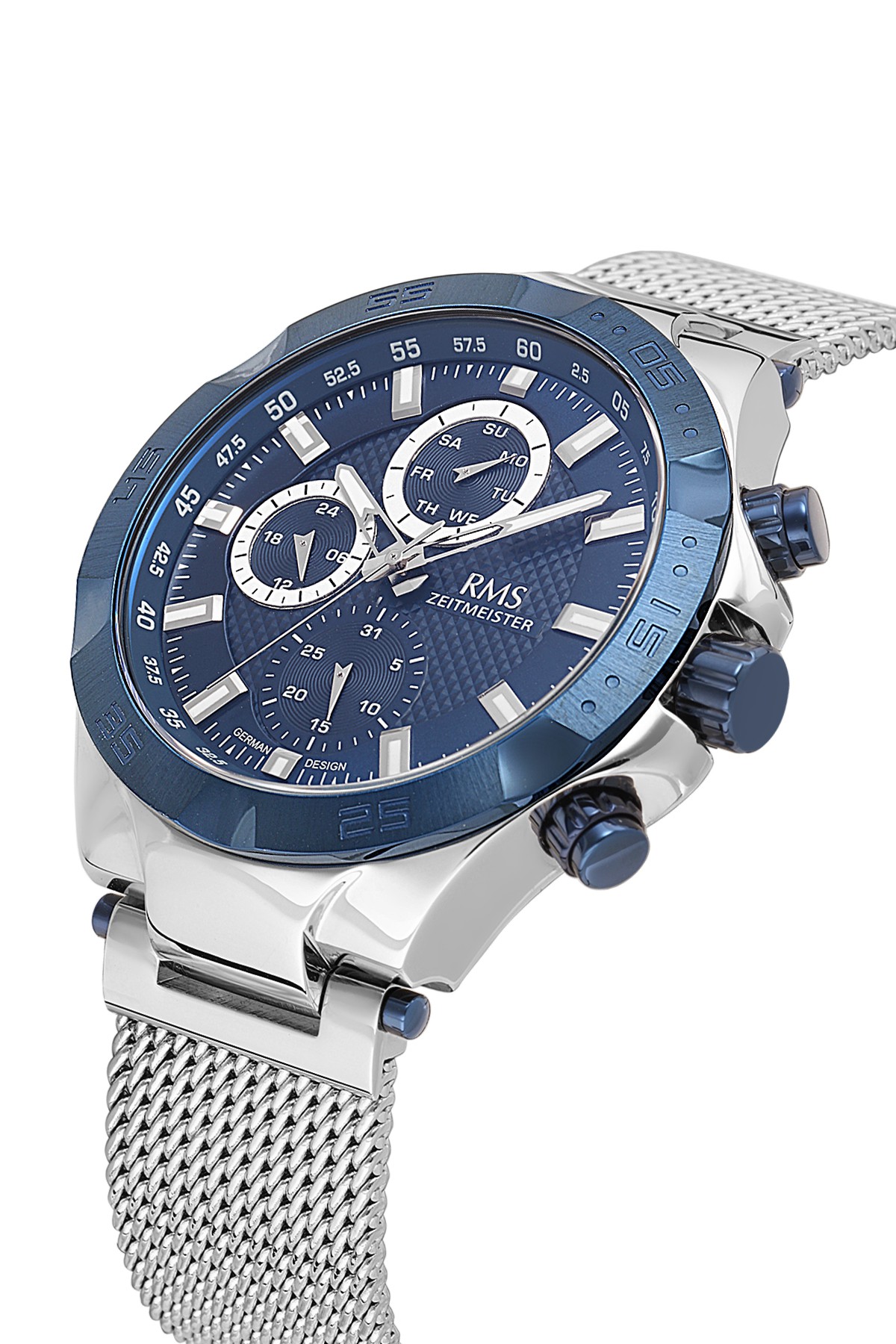 Erkek - Multi̇ Fonksi̇yon - Gümüş Mavi̇ - Mavi̇ - Çeli̇k Örme Kordon - 5 Atm - Sertleşti̇ri̇lmi̇ş Mi̇neral Cam - Grand Romanson - 48