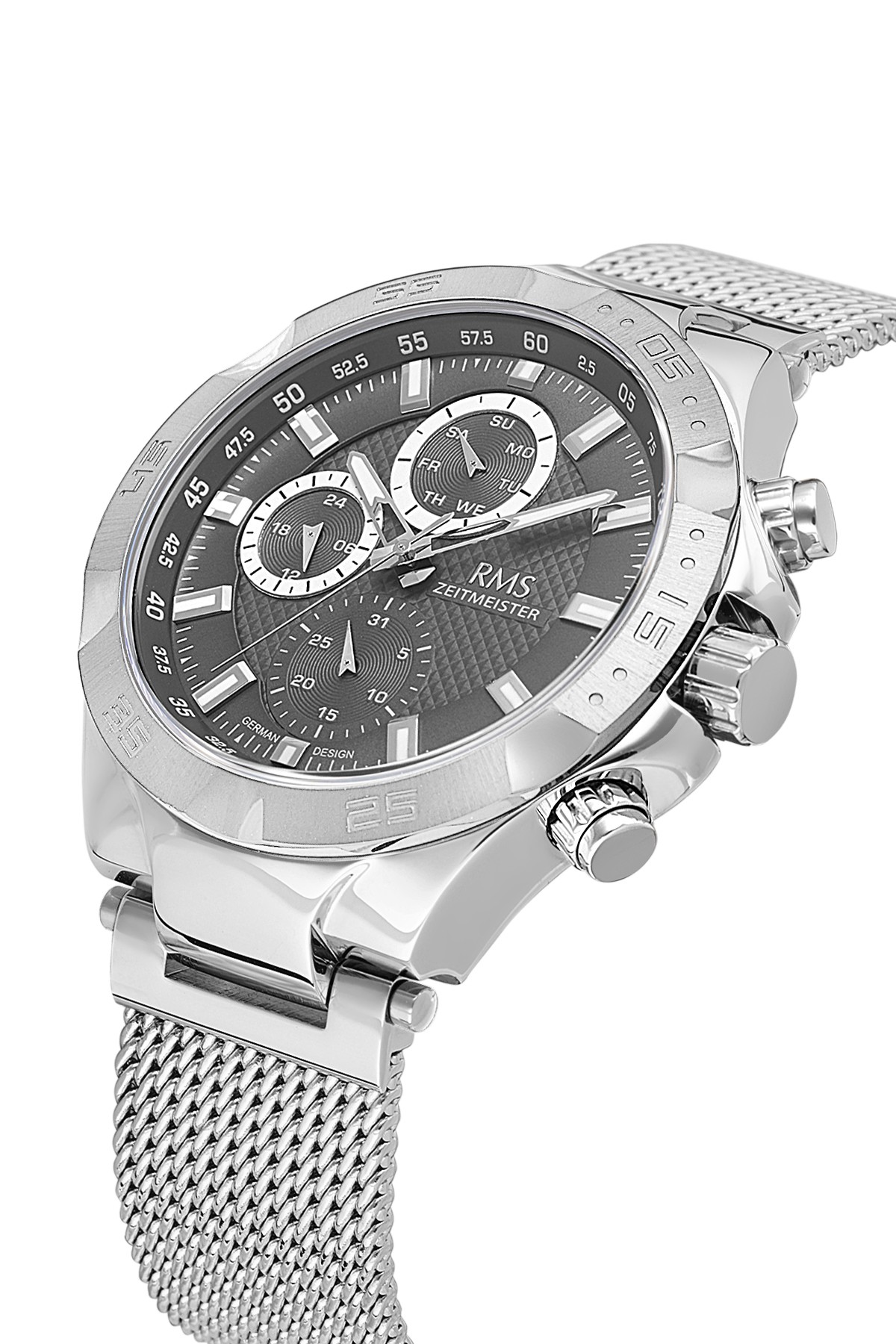 Erkek - Multi̇ Fonksi̇yon - Gümüş - Mavi̇ - Çeli̇k Örme Kordon - 5 Atm - Sertleşti̇ri̇lmi̇ş Mi̇neral Cam - Grand Romanson - 48