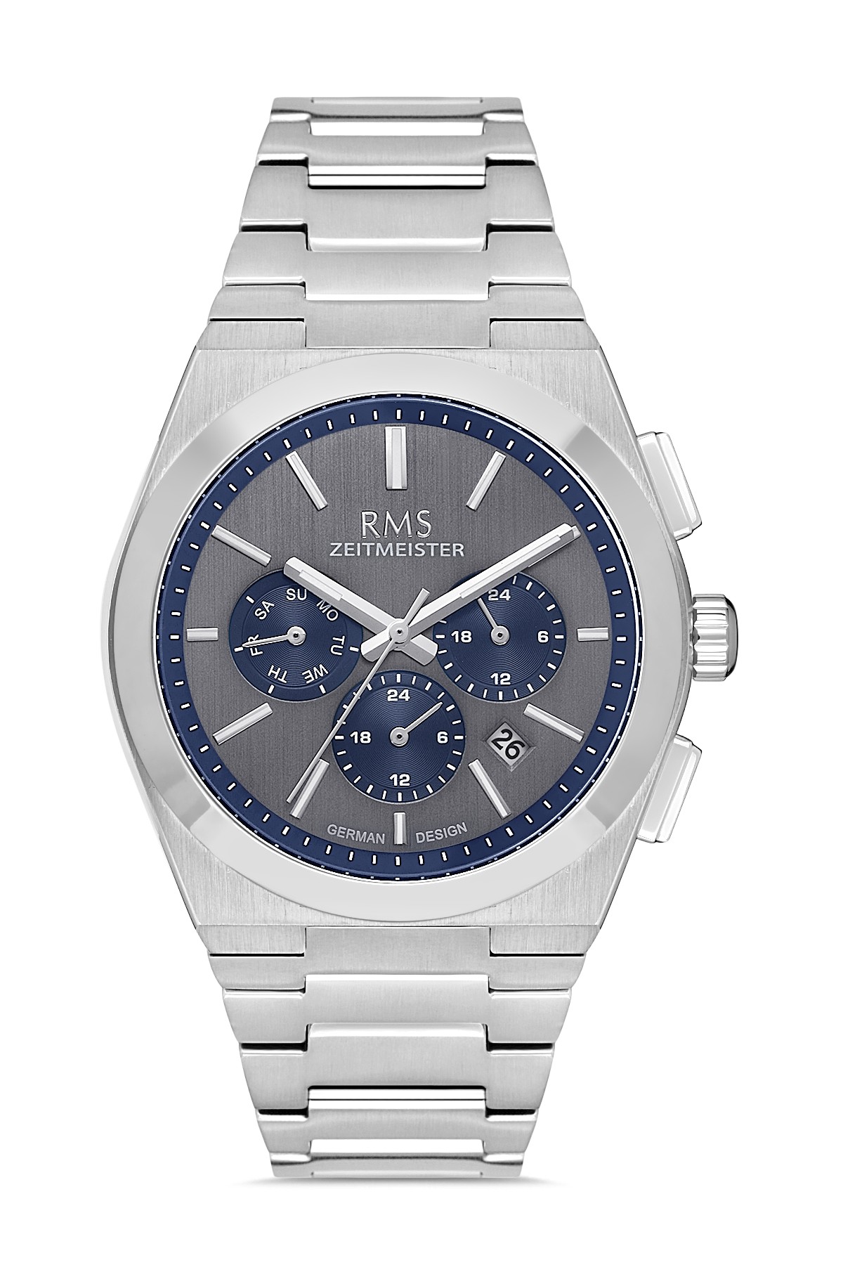 Erkek - Multi̇ Fonksi̇yon - Gümüş - Gri̇ - Paslanmaz Masi̇f Çeli̇k - 5 Atm - Sertleşti̇ri̇lmi̇ş Mi̇neral Cam - Grand Romanson - 43