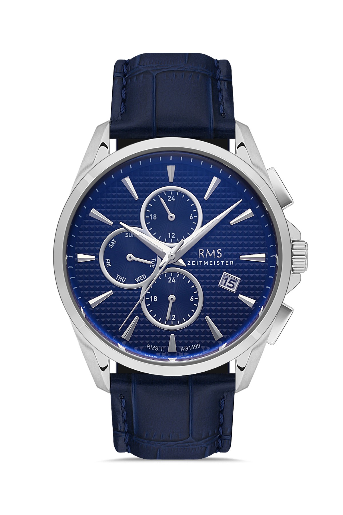 Erkek - Multi̇ Fonksi̇yon - Gümüş - Mavi̇ - Doğal Deri̇ Kordon - Mavi̇ - 3 Atm - Sertleşti̇ri̇lmi̇ş Mi̇neral Cam - Grand Romanson - 44