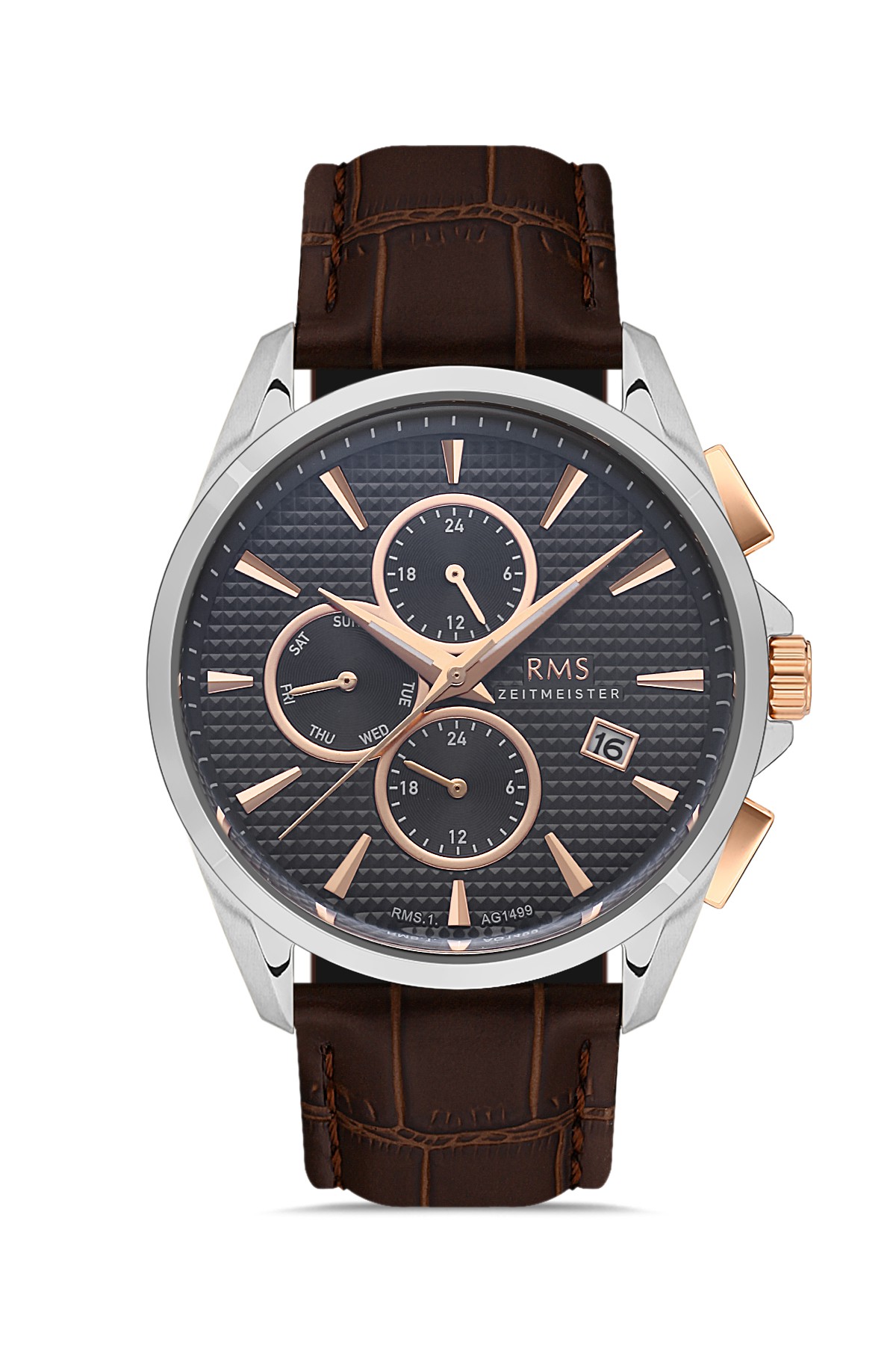 Erkek - Multi̇ Fonksi̇yon - Rose Beyaz - Gri̇ - Doğal Deri̇ Kordon - Kahverengi̇ - 3 Atm - Sertleşti̇ri̇lmi̇ş Mi̇neral Cam - Grand Romanson - 44