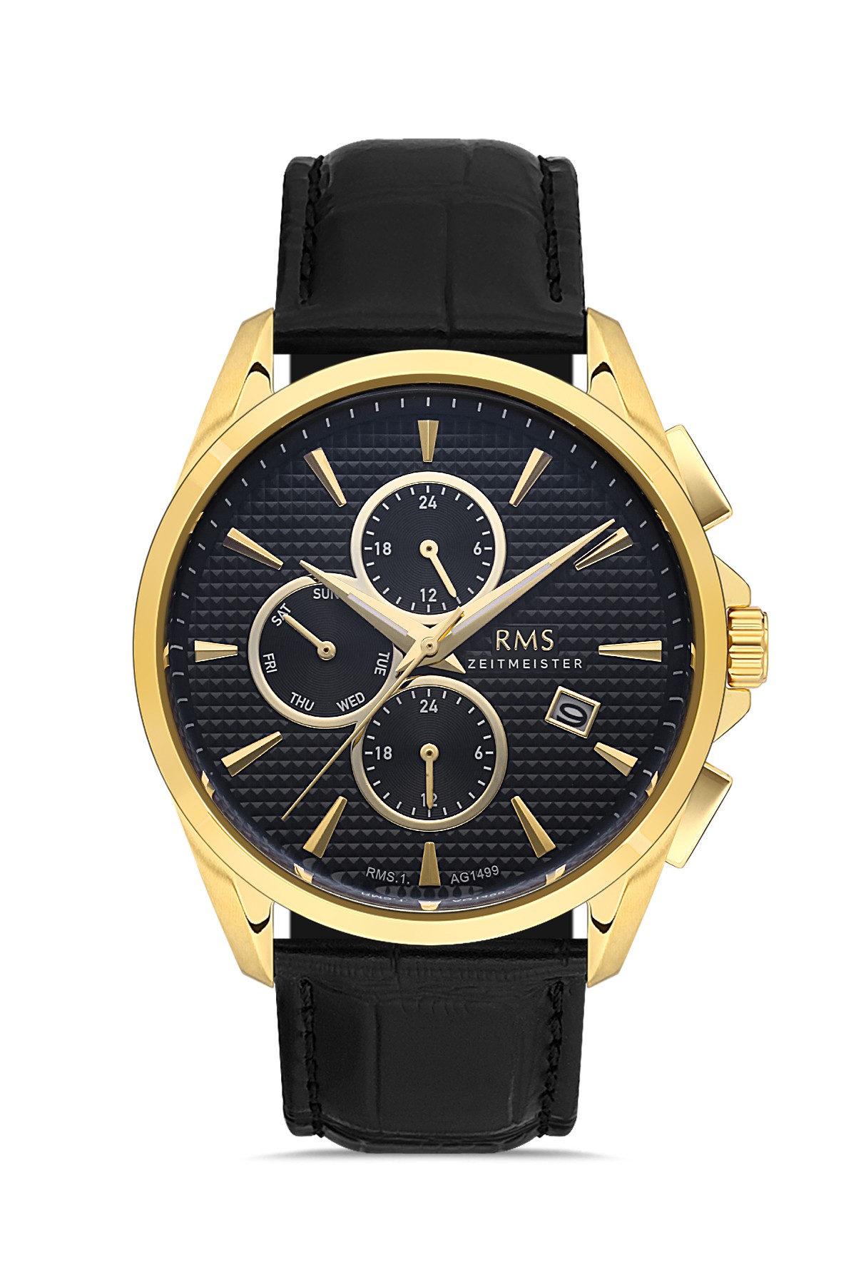 Erkek - Multi̇ Fonksi̇yon - Sari - Si̇yah - Doğal Deri̇ Kordon - Si̇yah - 3 Atm - Sertleşti̇ri̇lmi̇ş Mi̇neral Cam - Grand Romanson - 44