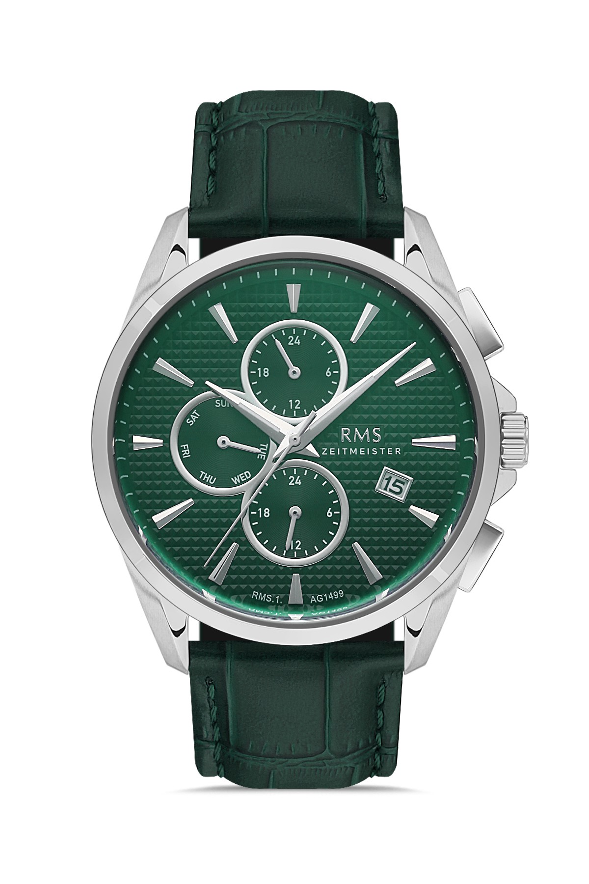 Erkek - Multi̇ Fonksi̇yon - Gümüş - Yeşi̇l - Doğal Deri̇ Kordon - Yeşi̇l - 3 Atm - Sertleşti̇ri̇lmi̇ş Mi̇neral Cam - Grand Romanson - 44
