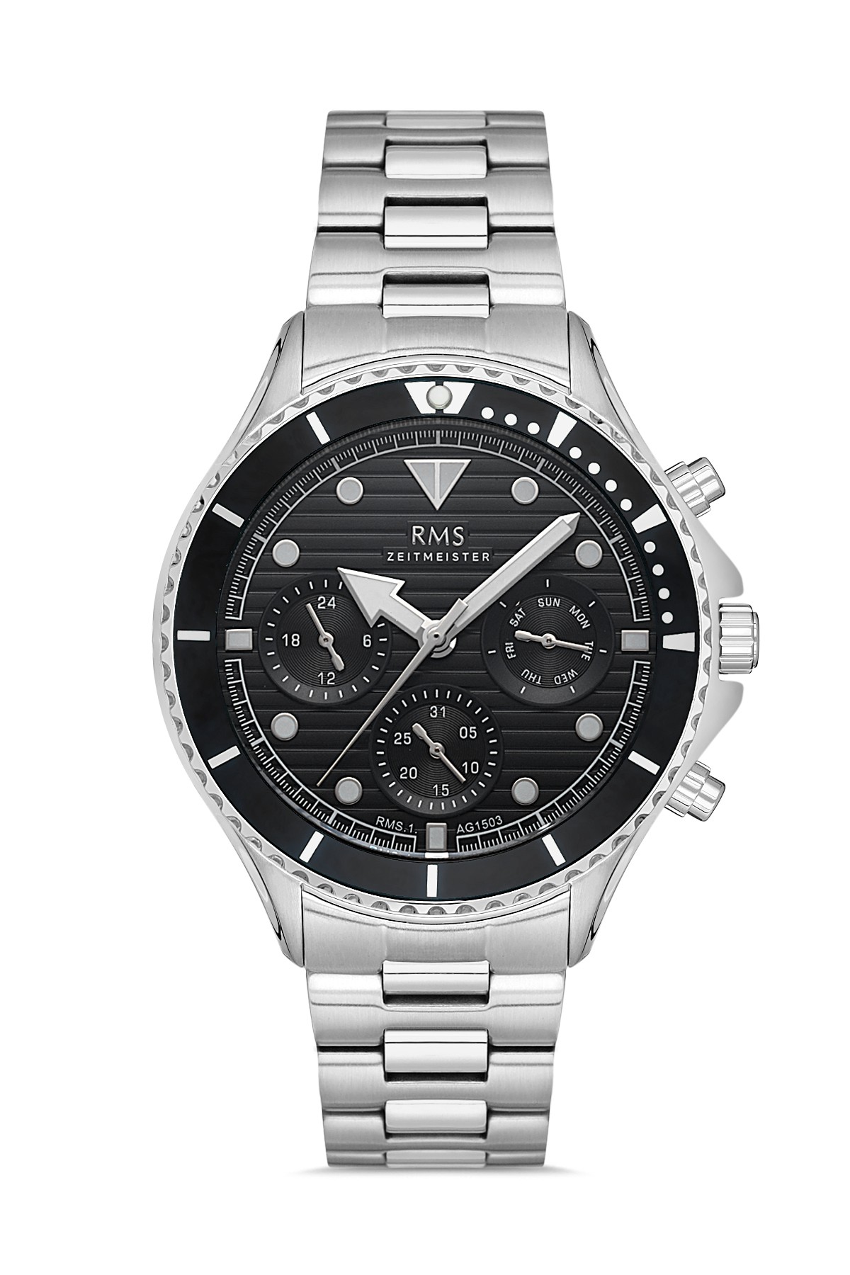 Erkek - Multi̇ Fonksi̇yon - Gümüş - Si̇yah - Paslanmaz Masi̇f Çeli̇k - 10 Atm - Sertleşti̇ri̇lmi̇ş Mi̇neral Cam - Grand Romanson - 43