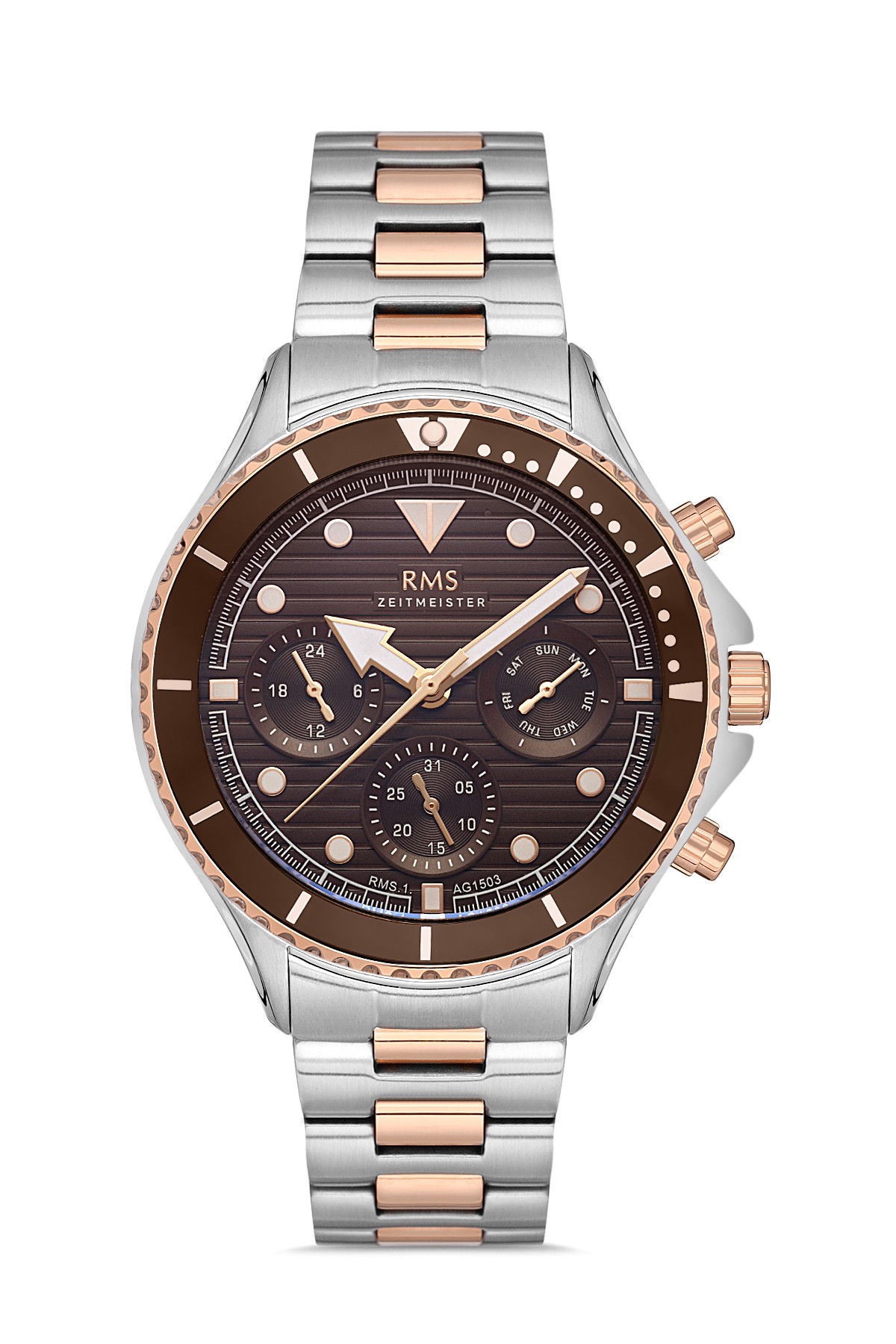 Erkek - Multi̇ Fonksi̇yon - Rose Beyaz - Kahverengi̇ - Paslanmaz Masi̇f Çeli̇k - 10 Atm - Sertleşti̇ri̇lmi̇ş Mi̇neral Cam - Grand Romanson - 43