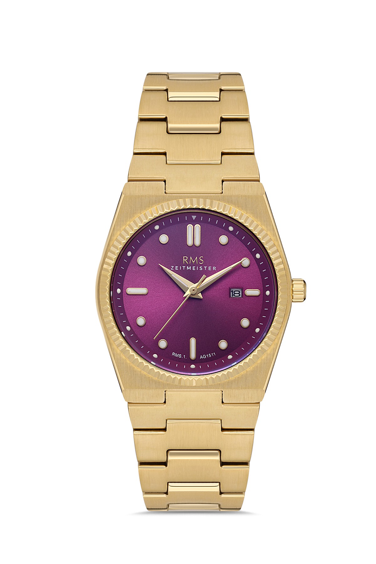 Kadın - Takvi̇mli̇ - Sari - Mor - Paslanmaz Masi̇f Çeli̇k - 3 Atm - Sertleşti̇ri̇lmi̇ş Mi̇neral Cam - Grand Romanson