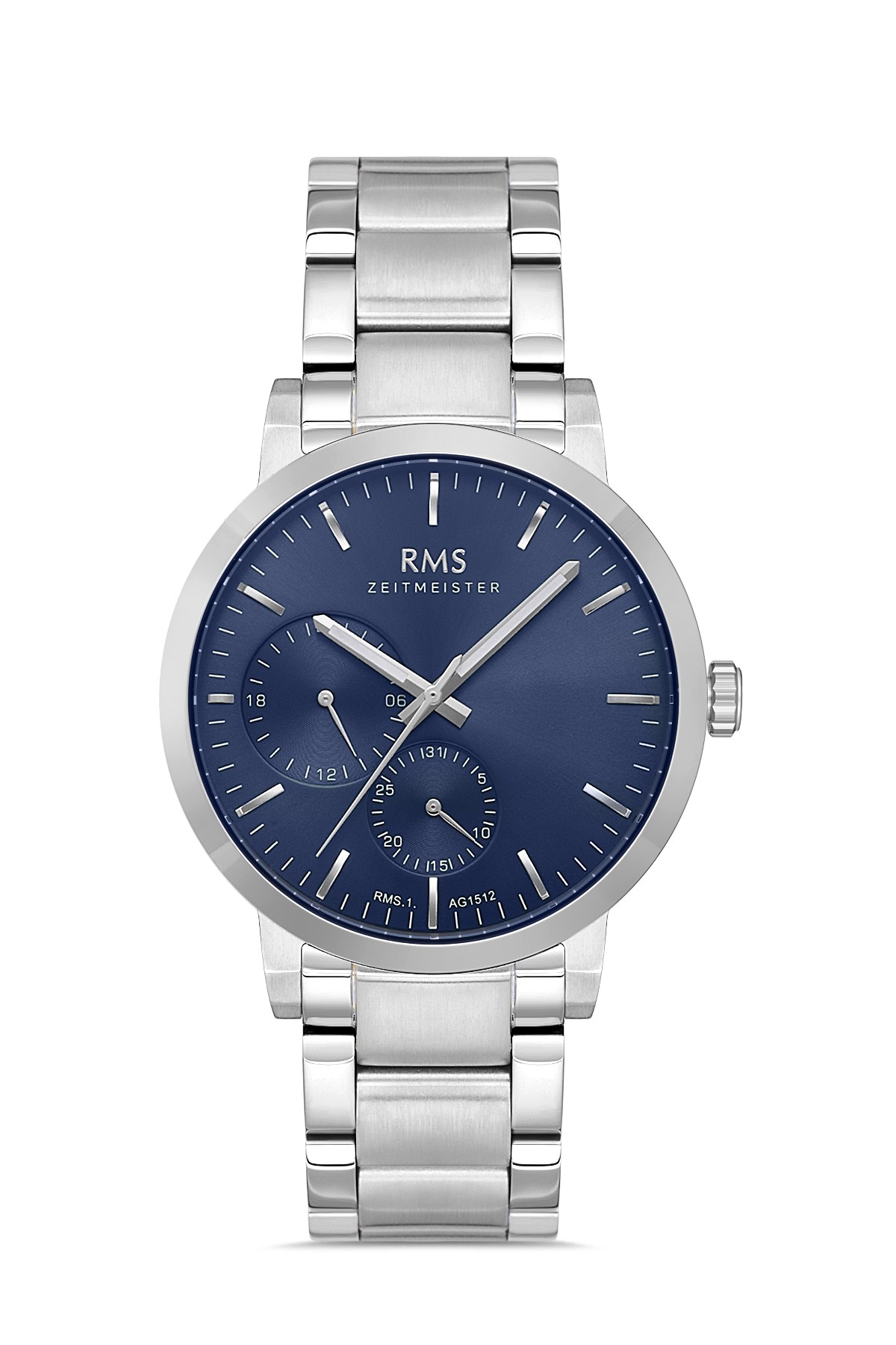 Erkek - Multi̇ Fonksi̇yon - Gümüş - Mavi̇ - Paslanmaz Masi̇f Çeli̇k - 3 Atm - Sertleşti̇ri̇lmi̇ş Mi̇neral Cam - Grand Romanson