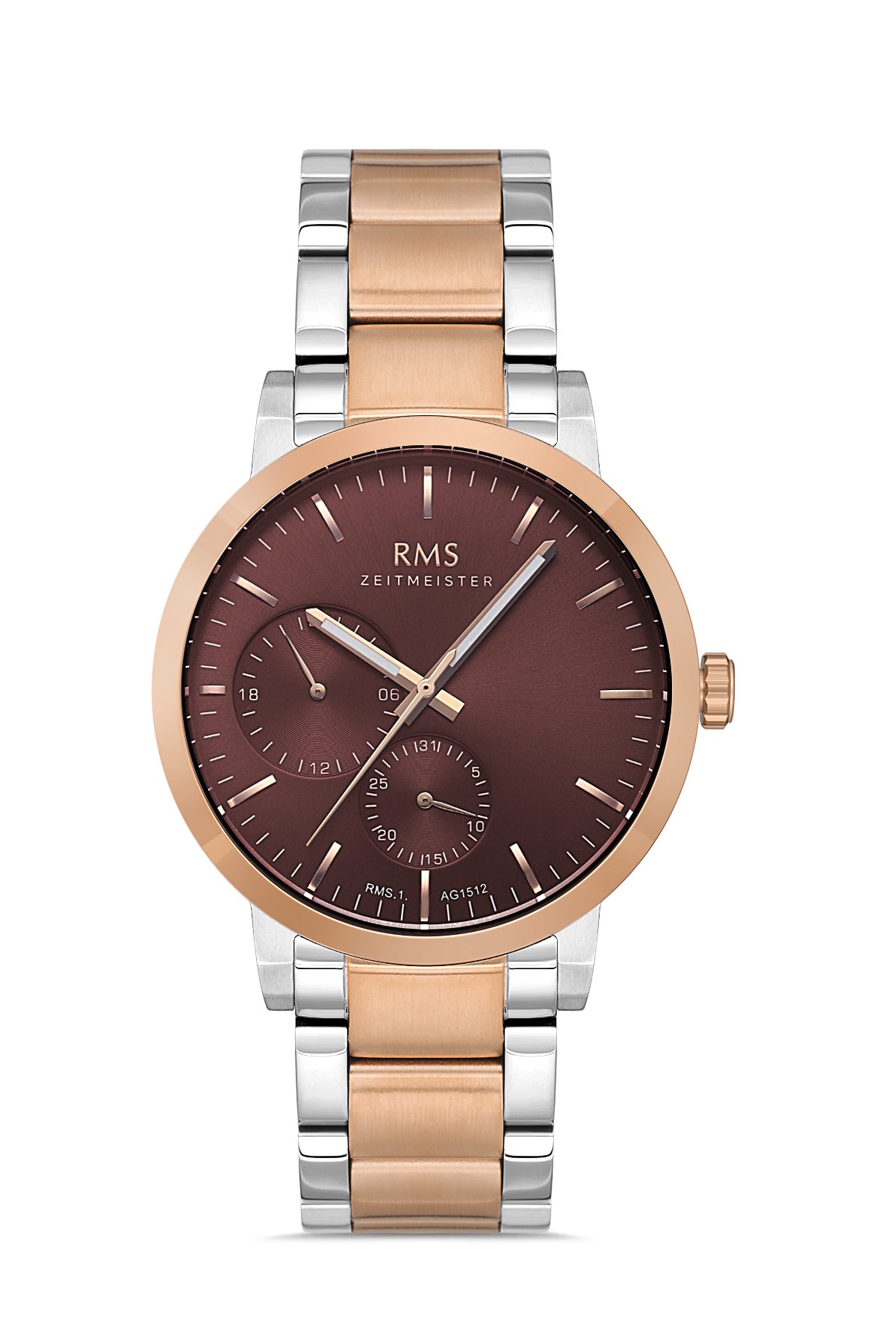 Erkek - Multi̇ Fonksi̇yon - Rose Beyaz - Kahverengi̇ - Paslanmaz Masi̇f Çeli̇k - 3 Atm - Sertleşti̇ri̇lmi̇ş Mi̇neral Cam - Grand Romanson