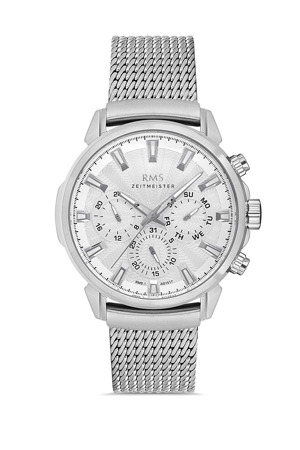Erkek - Multi̇ Fonksi̇yon - Gümüş - Gümüş - Çeli̇k Örme Kordon - 3 Atm - Sertleşti̇ri̇lmi̇ş Mi̇neral Cam - Grand Romanson