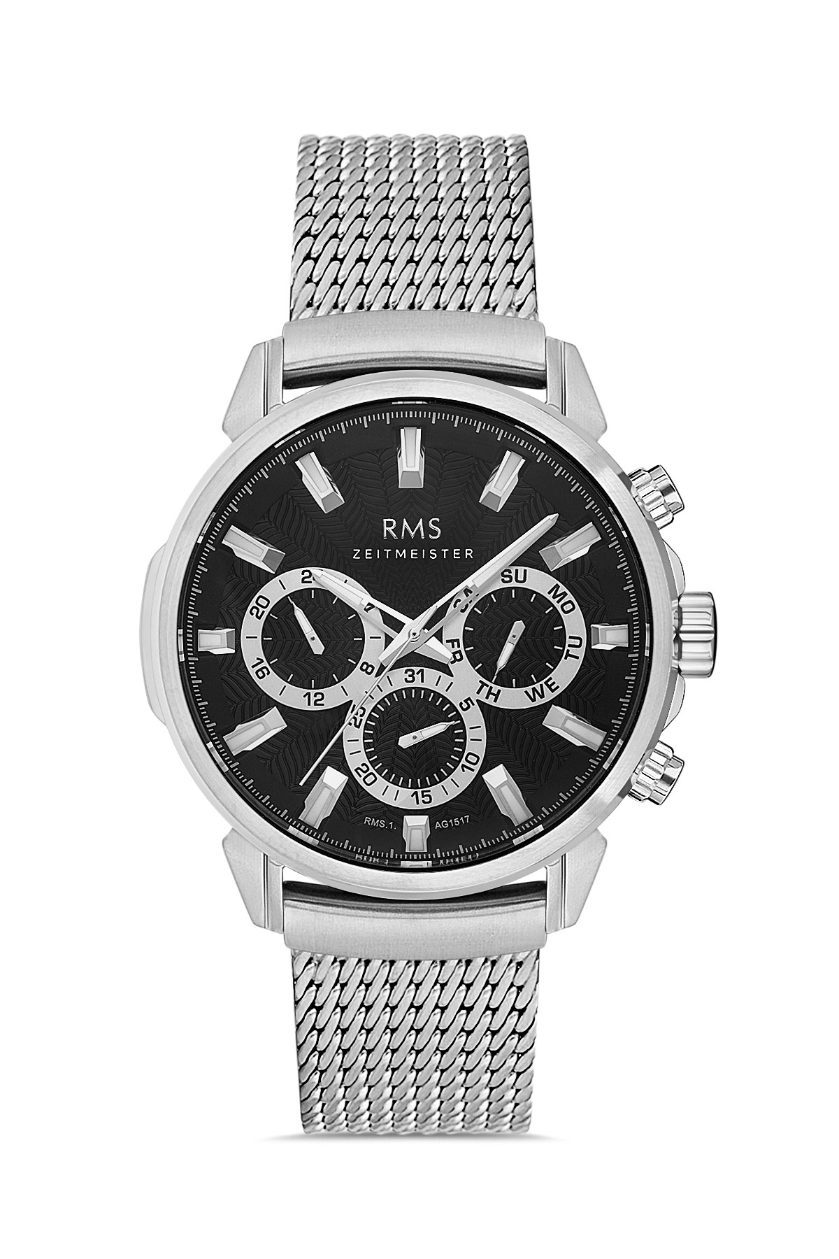 Erkek - Multi̇ Fonksi̇yon - Gümüş - Si̇yah - Çeli̇k Örme Kordon - 3 Atm - Sertleşti̇ri̇lmi̇ş Mi̇neral Cam - Grand Romanson