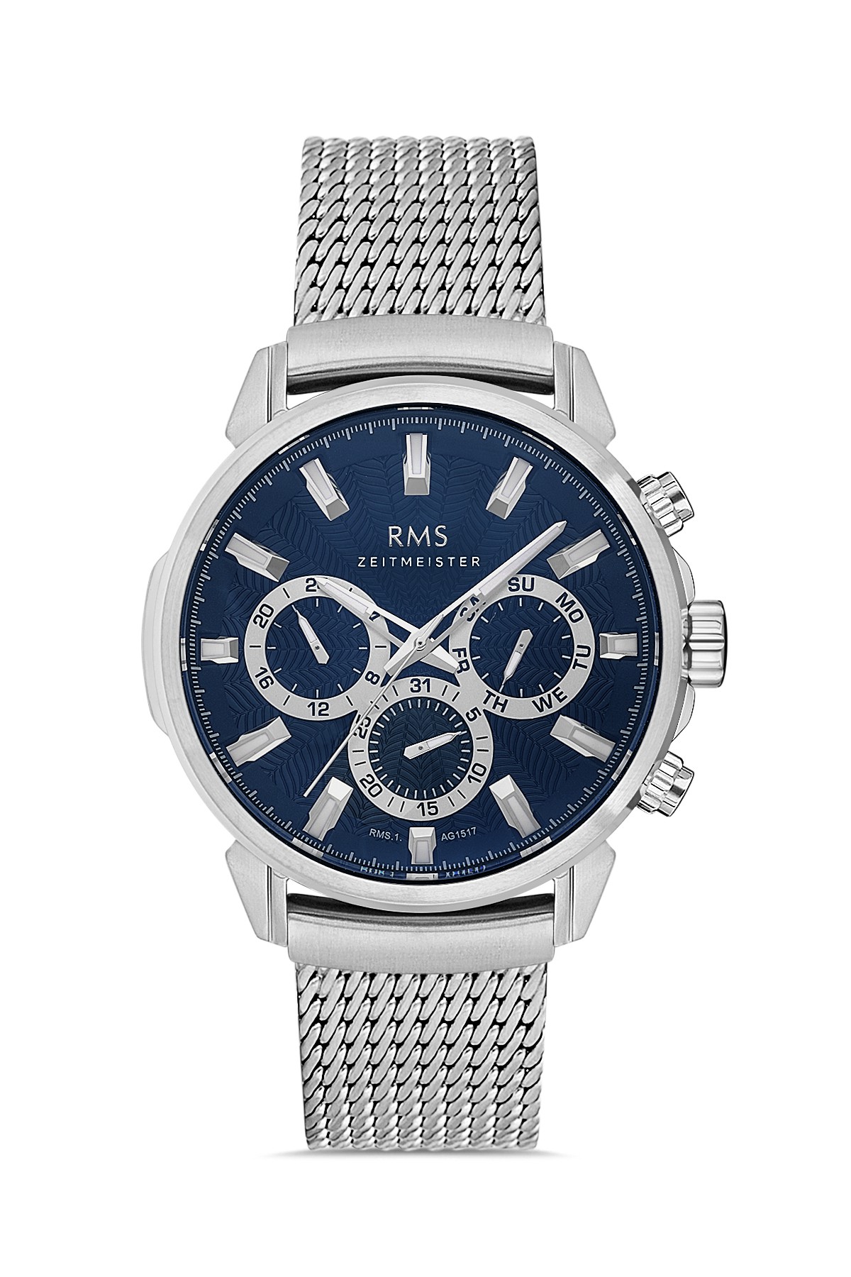 Erkek - Multi̇ Fonksi̇yon - Gümüş - Mavi̇ - Çeli̇k Örme Kordon - 3 Atm - Sertleşti̇ri̇lmi̇ş Mi̇neral Cam - Grand Romanson