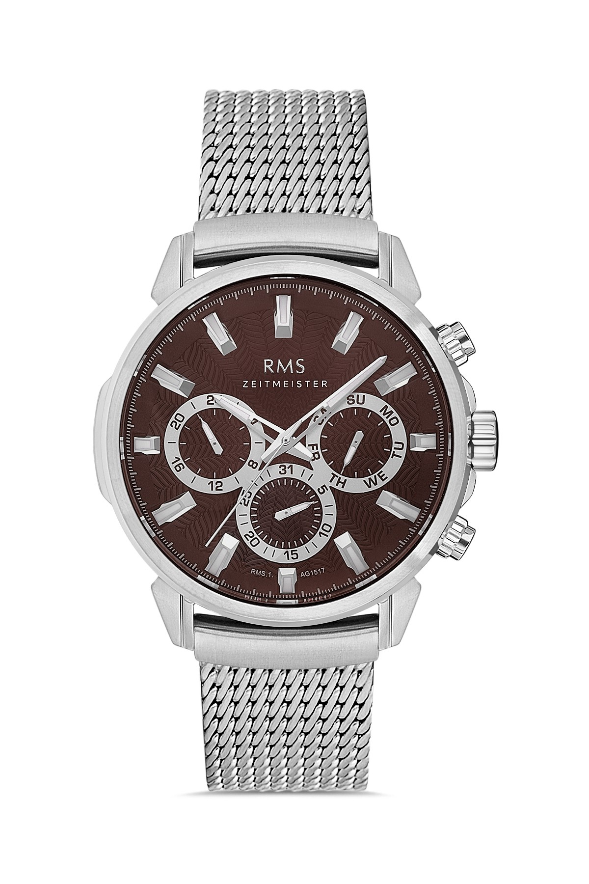 Erkek - Multi̇ Fonksi̇yon - Gümüş - Kahverengi̇ - Çeli̇k Örme Kordon - 3 Atm - Sertleşti̇ri̇lmi̇ş Mi̇neral Cam - Grand Romanson